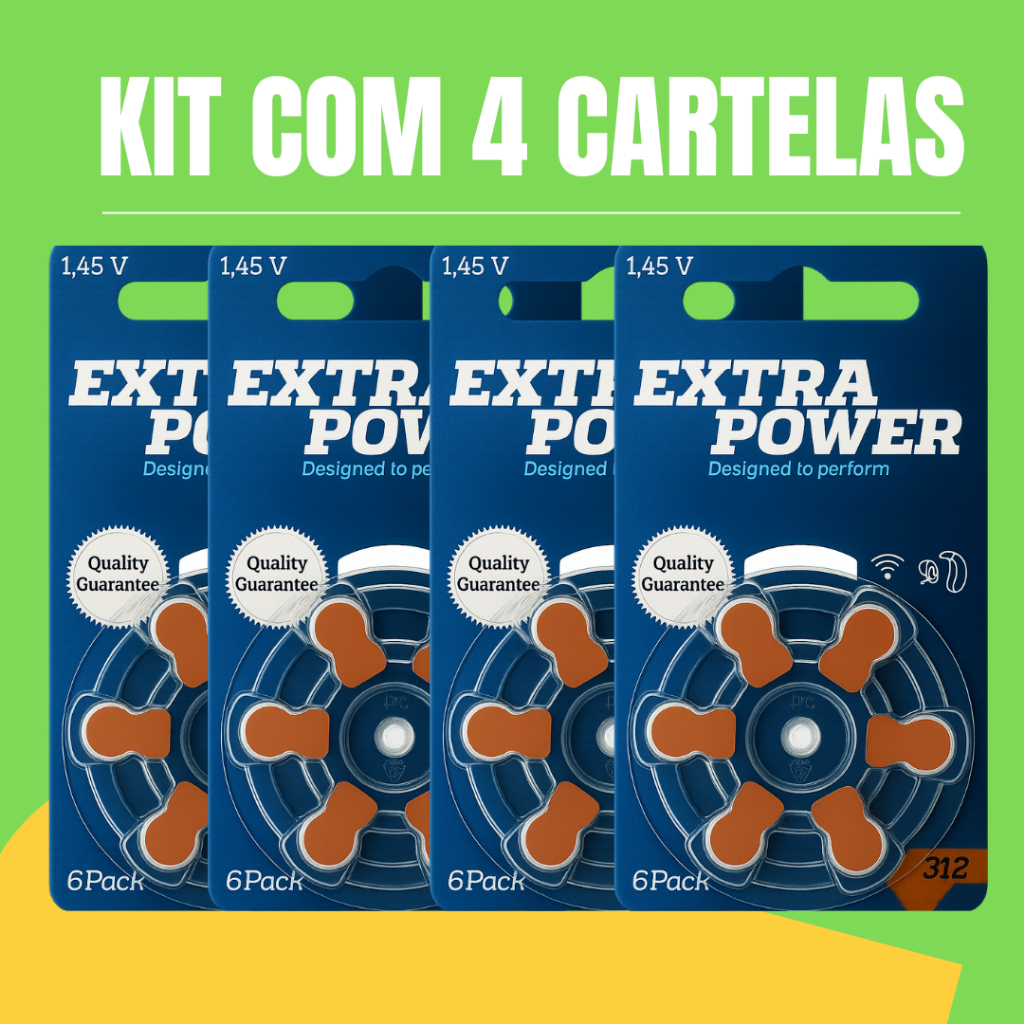 Bateria Auditiva Extra Power 312 PR41 – Kit Econômico com 4 Cartelas