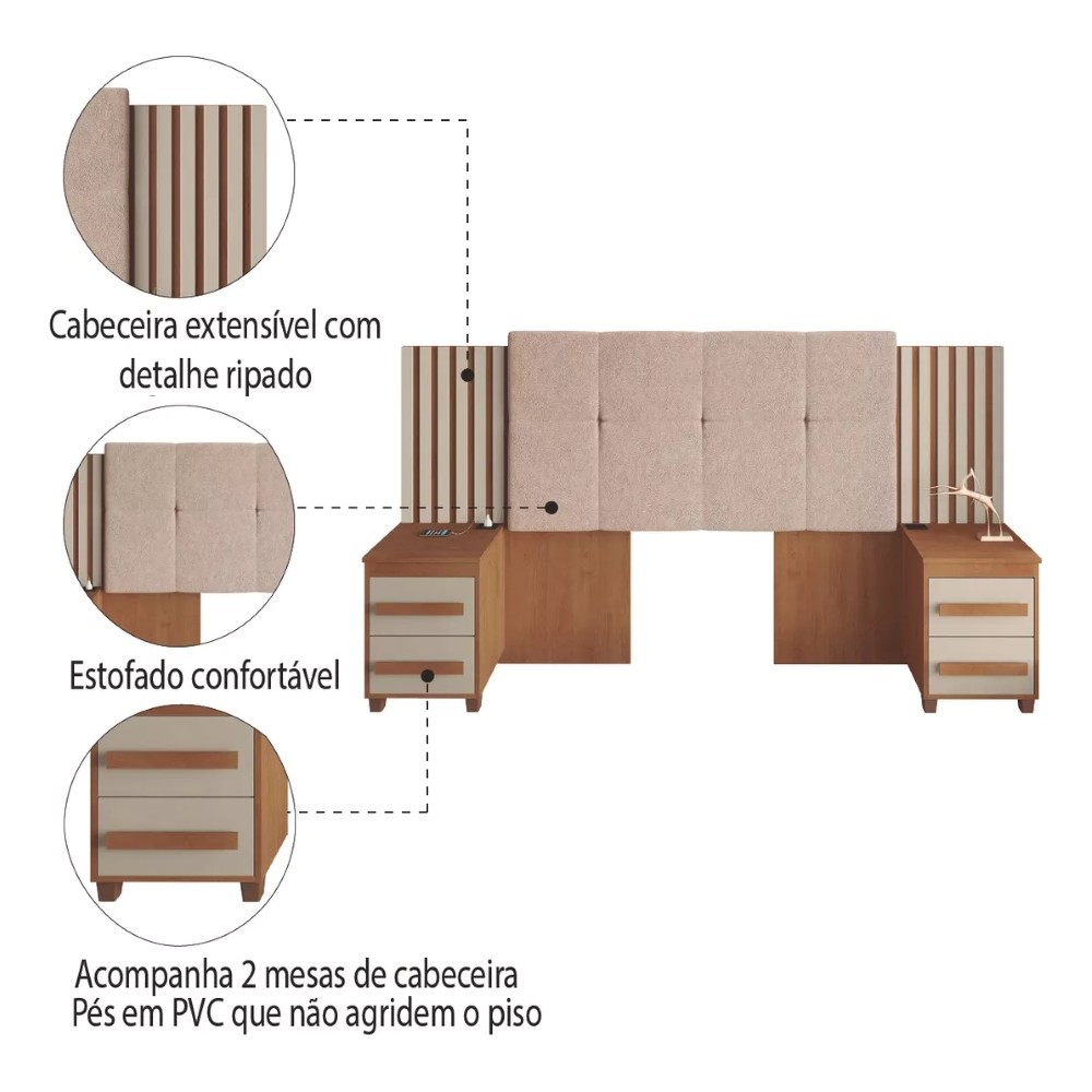 Cabeceira Estofada Ripada Casal Queen/king 2 Criados Suiça