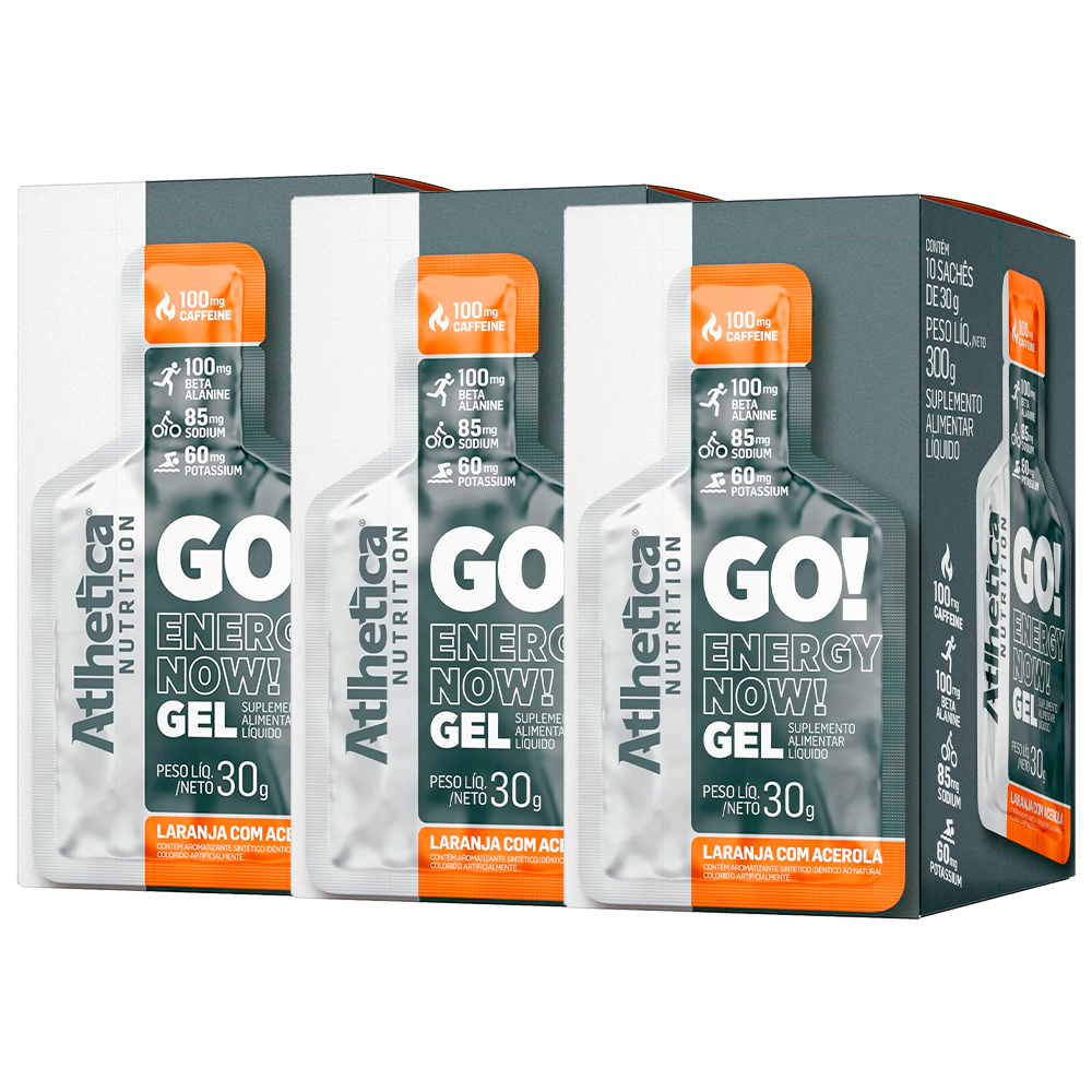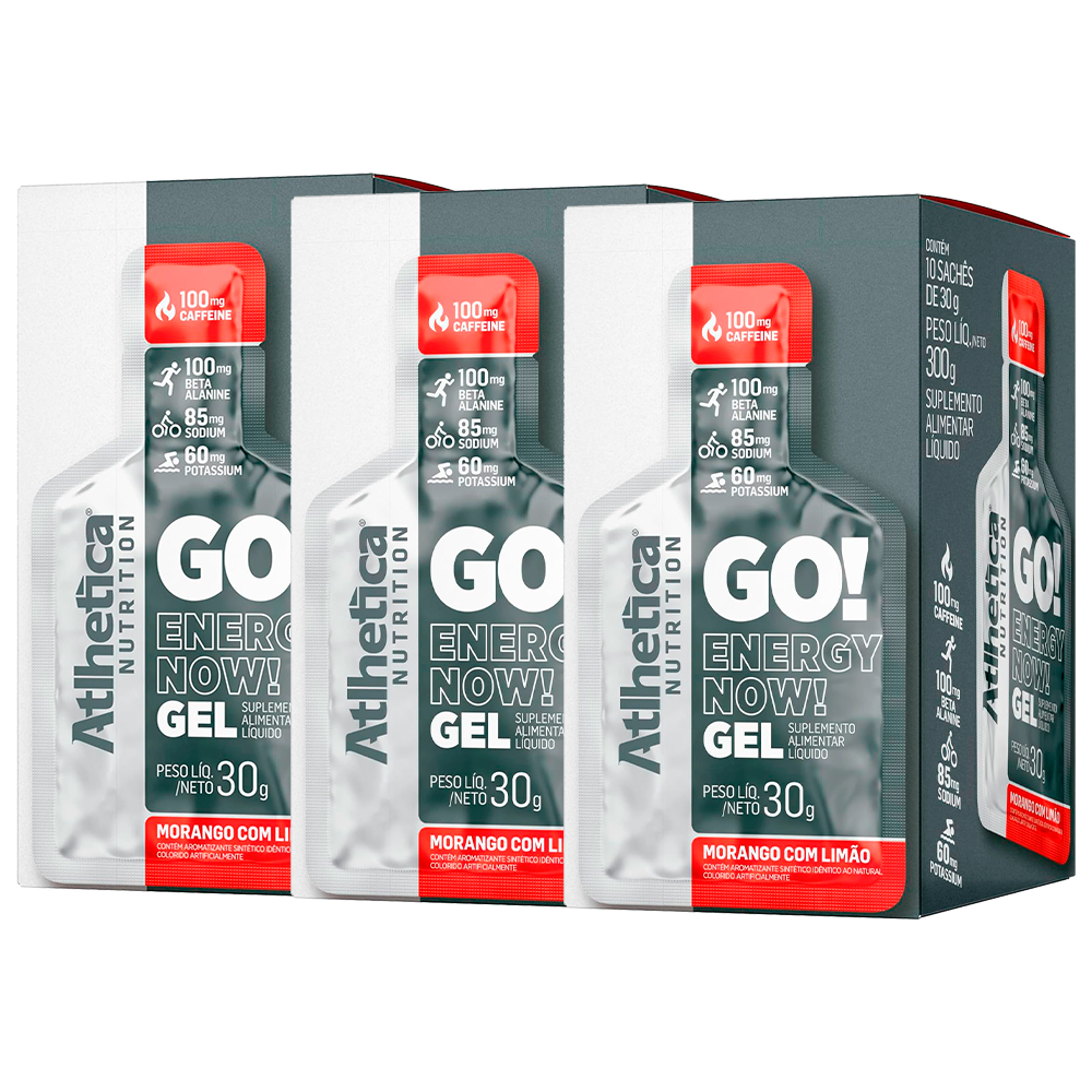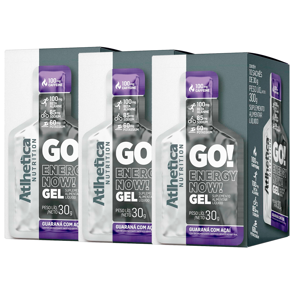 Kit 3x Displays Go! Energy Now Gel Atlhetica - 30 Sachês 30g Suplemento Energético com Cafeína