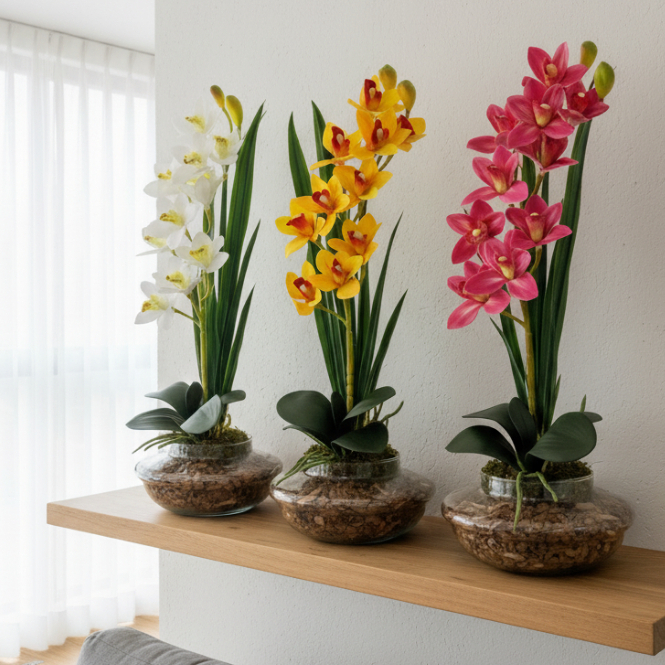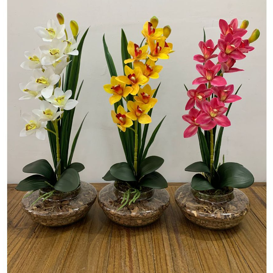 ARRANJO ARTIFICIAL ORQUIDEA DE SILICONE 3D C/ 60CM ALTURA - CENTRO DE MESA / APARADOR / ESCRITORIO / DECORAÇÃO