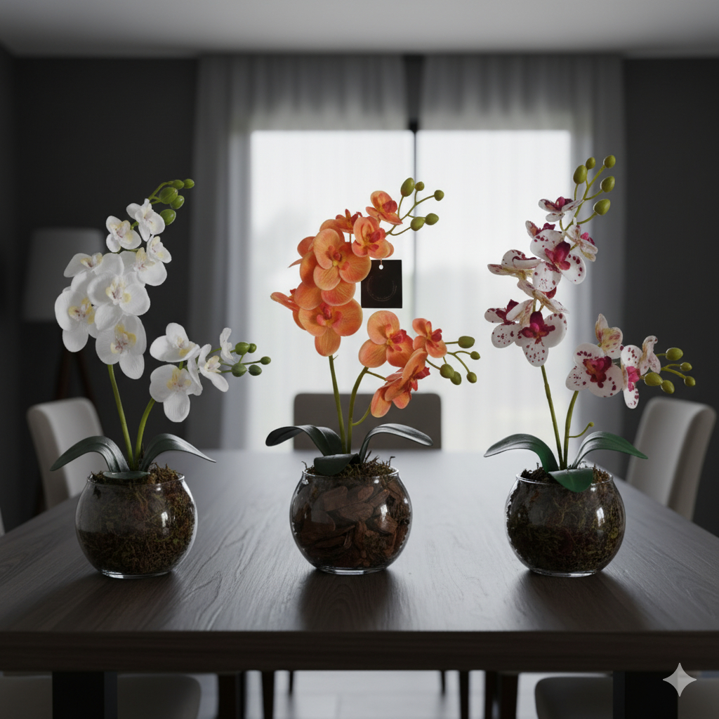 ARRANJO DE ORQUÍDEA NO VASO DE VIDRO - TAMANHO DO ARRANJO 40 CM - LINDAS OPÇÕES DE CORES
