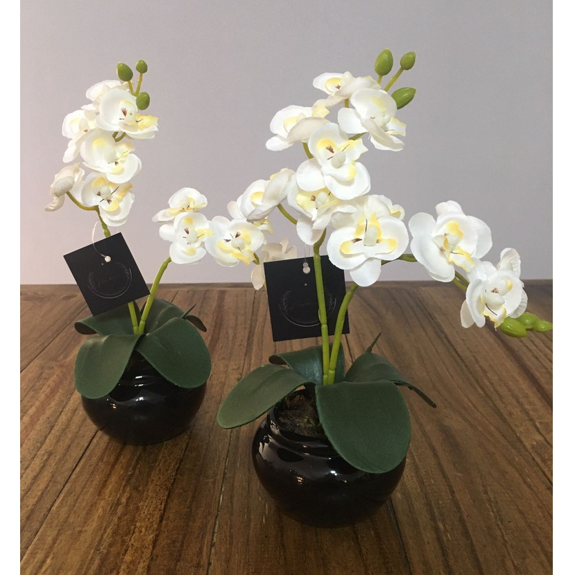 ARRANJO DE MINI ORQUÍDEA BRANCA NO VASO DE CERÂMICA REDONDO - 24 CM ALTURA