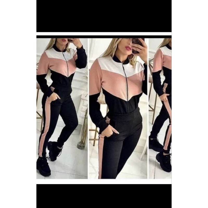conjunto femenino inverno calça blusa manga longa malha crepé
