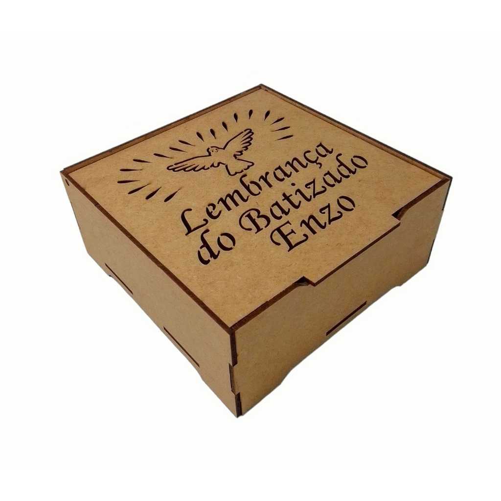 5 Caixa 15x15x5 cm Batizado com Nome , Lembrancinha, Festa, Tampa articulada MDF