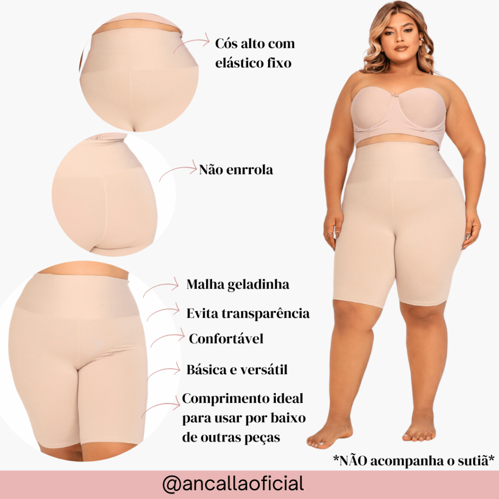 Bermuda Segunda Pele Plus Size Short Forro Usar por Baixo Sem Transparência Cós Cintura Alta