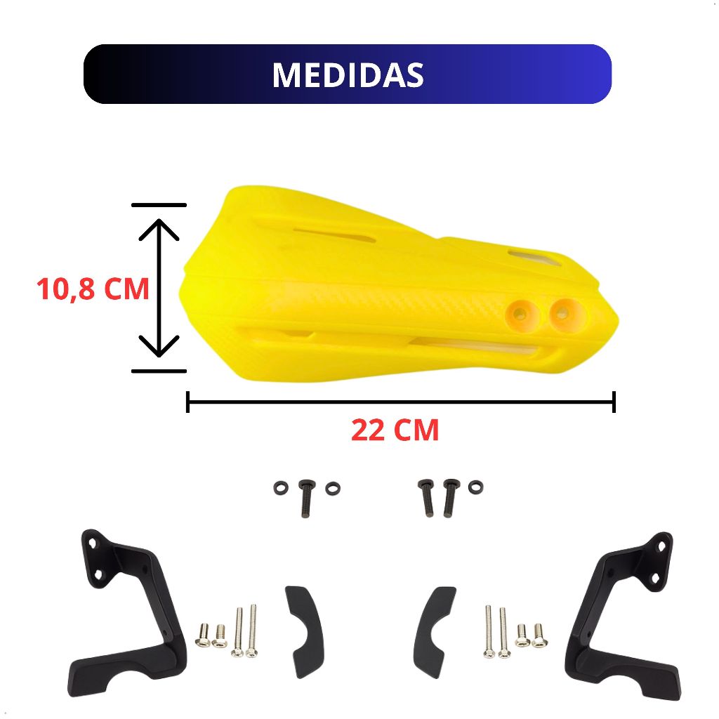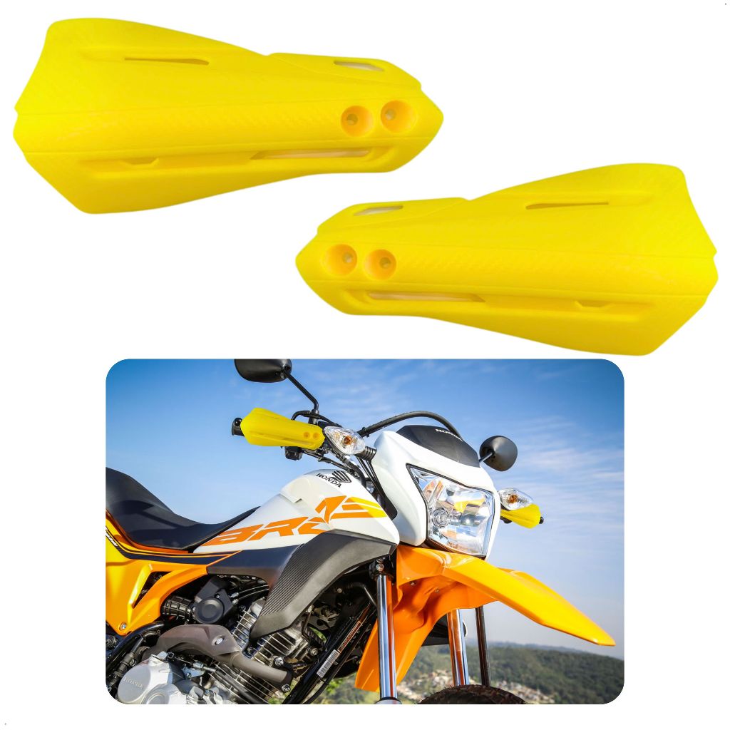 Kit Protetor Mão Modelo Rx Moto Amarelo Manopla Punho Nylon Universal Guidão 22mm