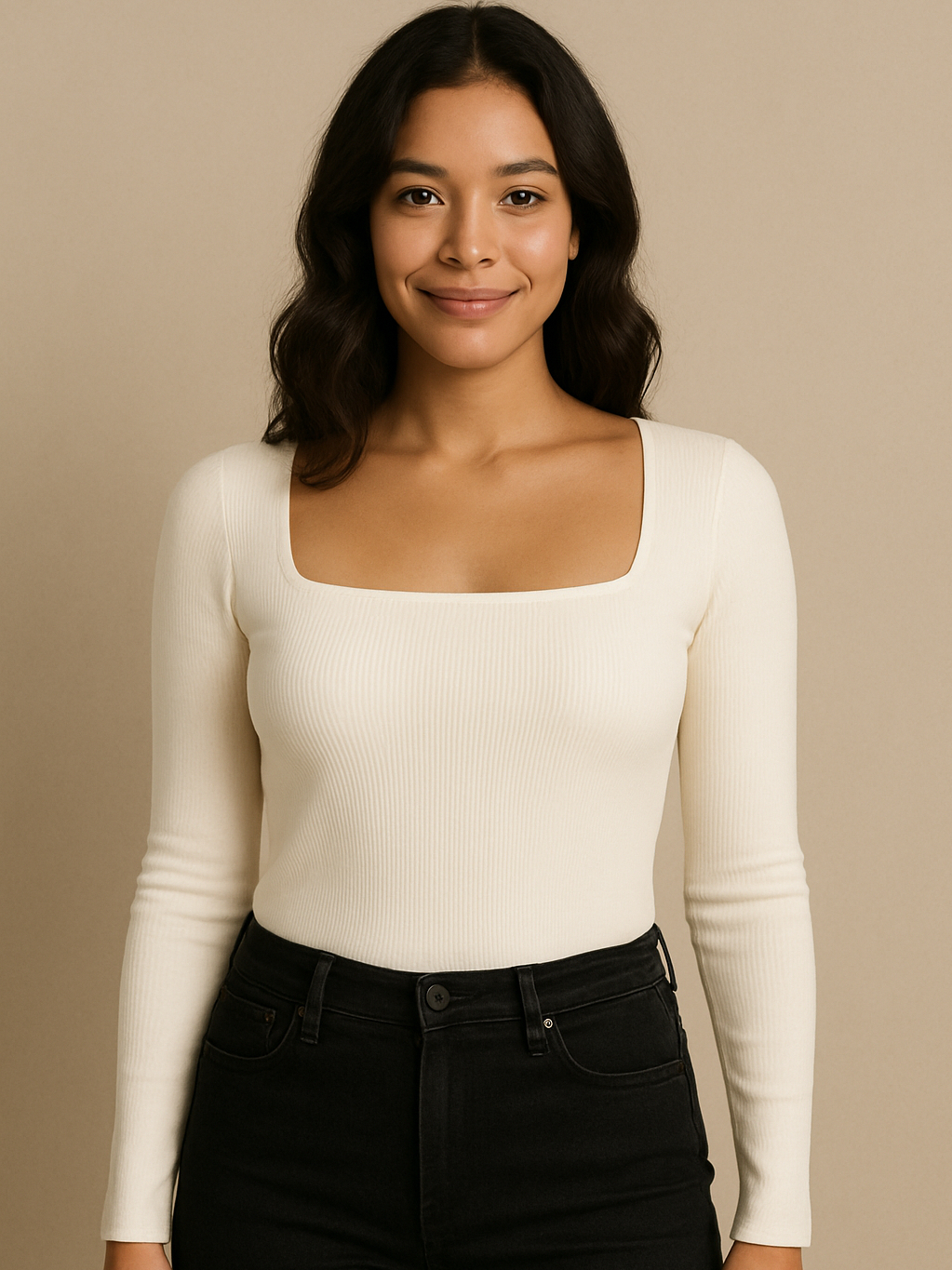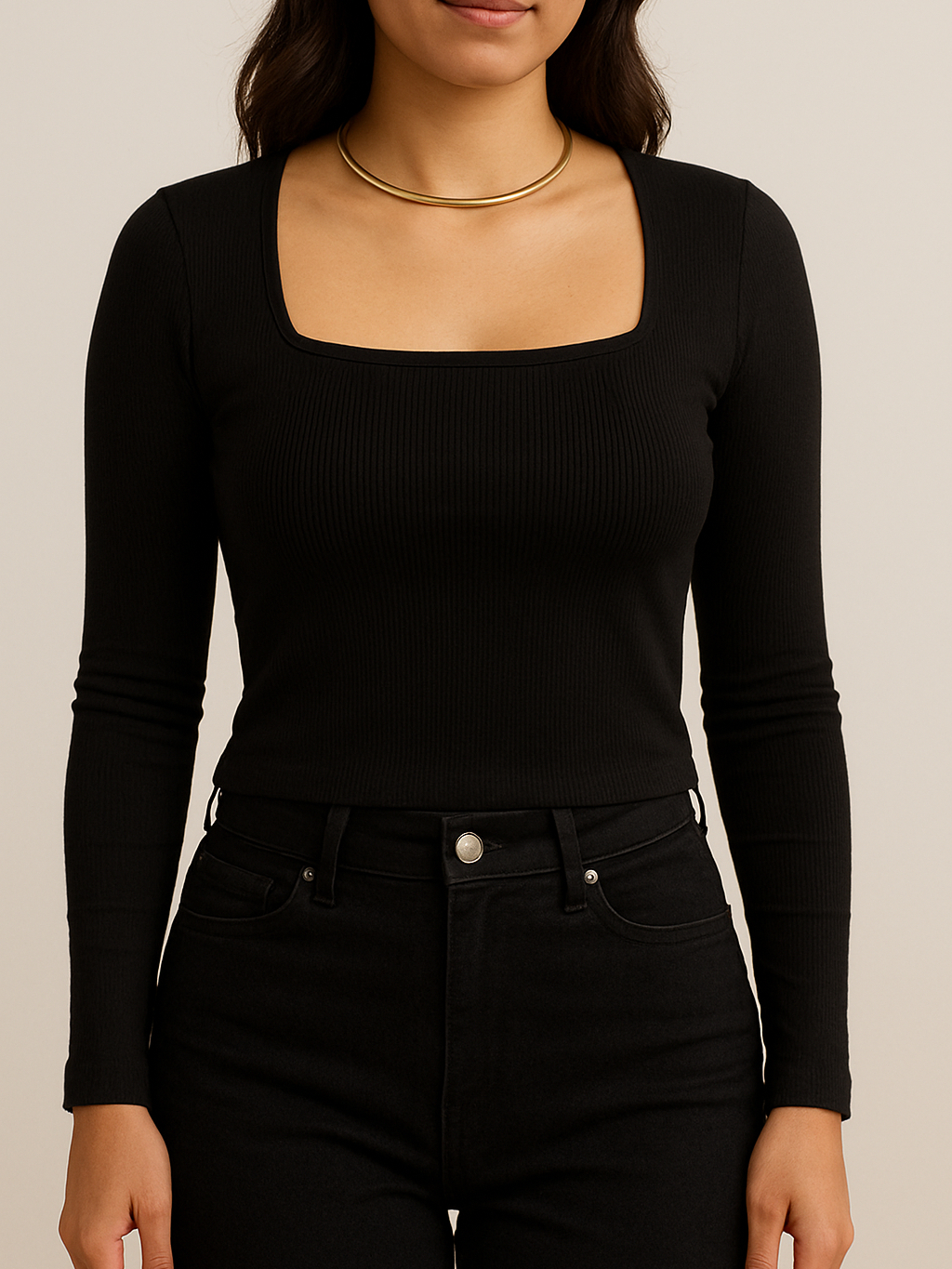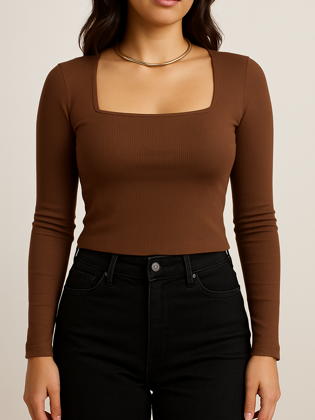 Blusa Feminina Decote Quadrado Manga Longa Ribana Canelada