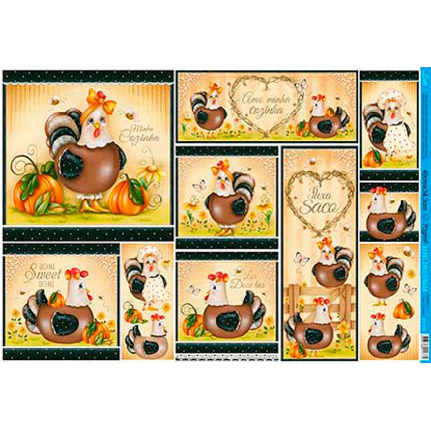 Pacote 5 Papel Decoupage Pd-916 Galinhas e Abóboras 34,3x49 - Litoarte