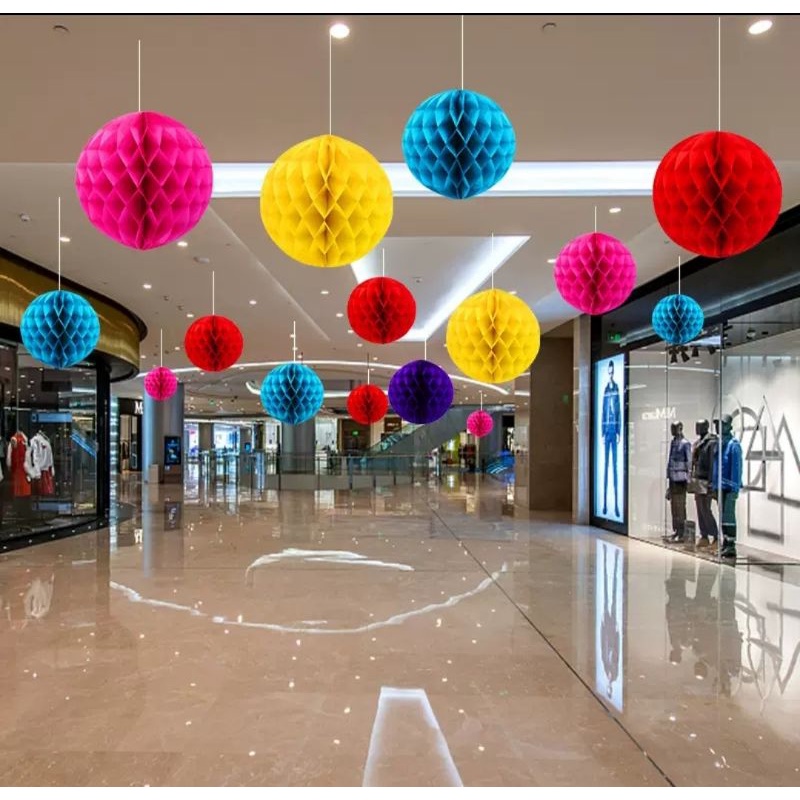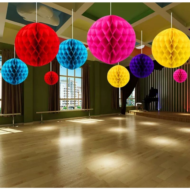 7 Balão Pompom Colmeia Bola De Papel Seda Festa Decora 20 Cm
