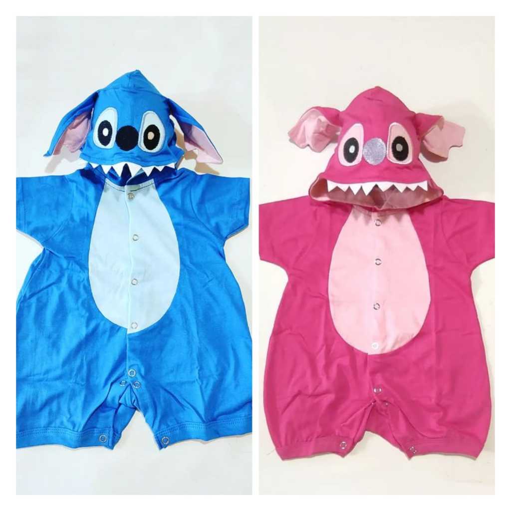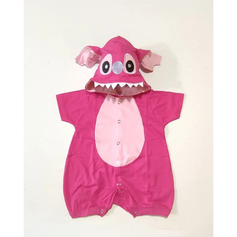 Fantasia Stitch Bebê Azul e Rosa Mesversario Infantil - Stitch - Macacão Bordado Com Gorro