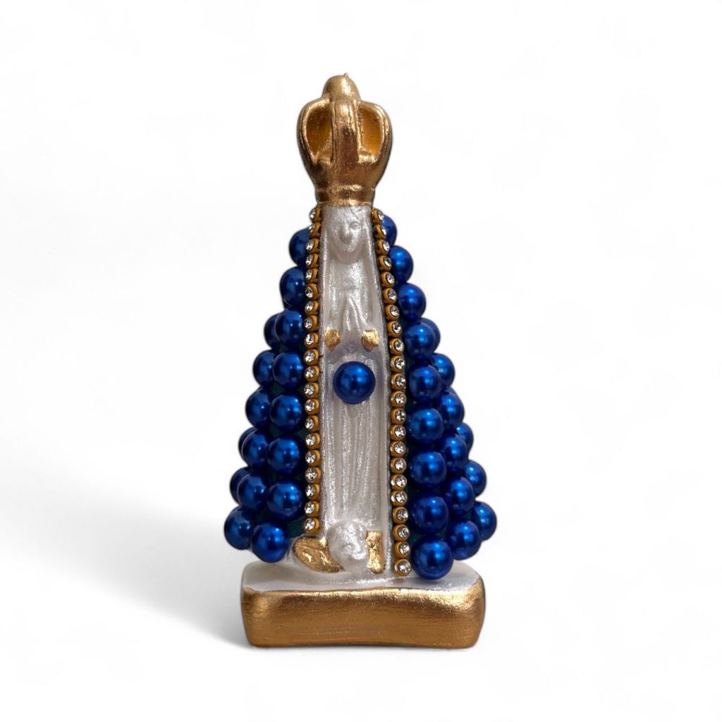 Kit Com 10 Nossa Senhora Aparecida 10cm Pérolas Azul Com Detalhes Dourado e Strass