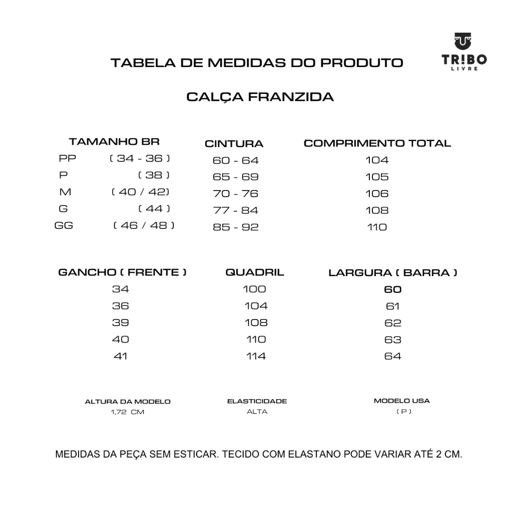 Calça Feminina Franzida Reta Cintura Alta em Viscolycra Tribo livre