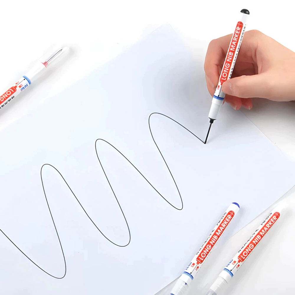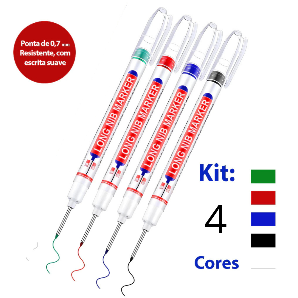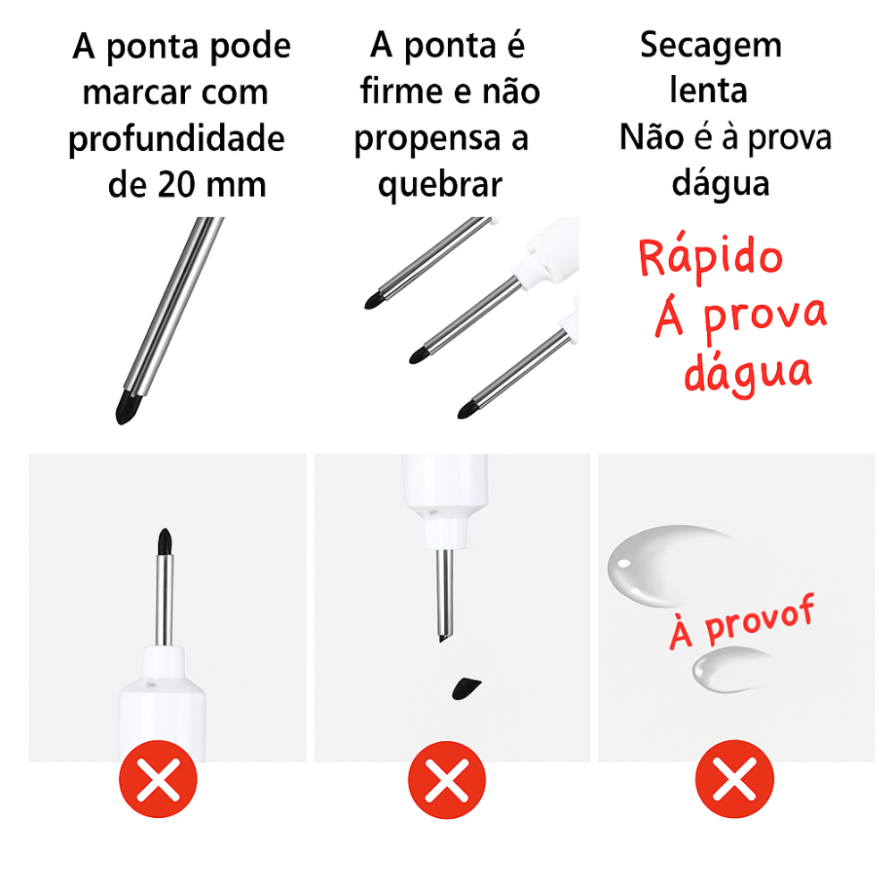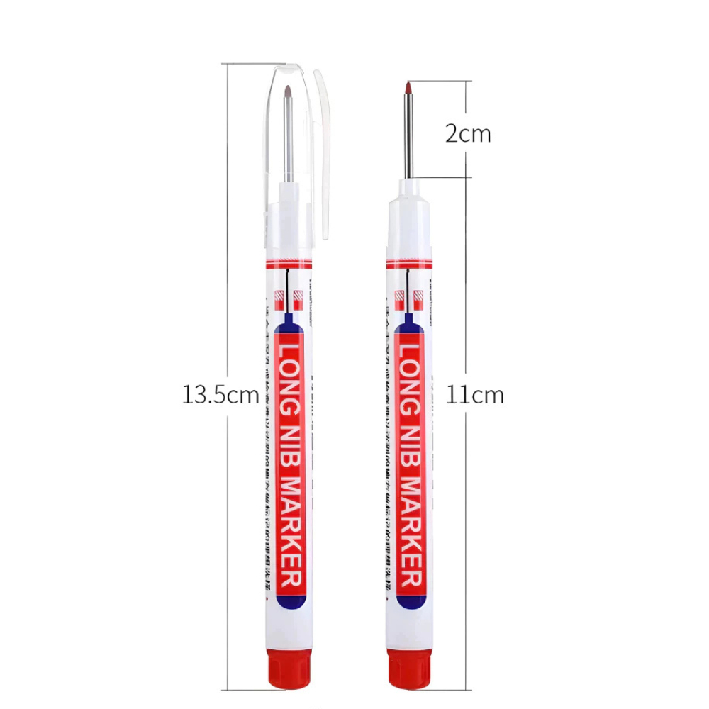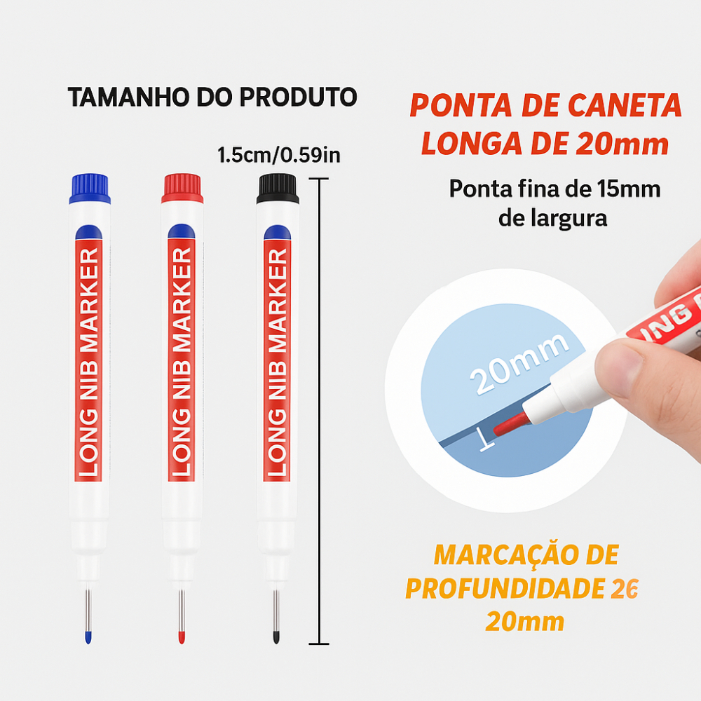 Caneta Marcador Ponta Longa 20mm Prova Agua Marceneiro Marcar Buracos Metal Madeira Vidro Plastico