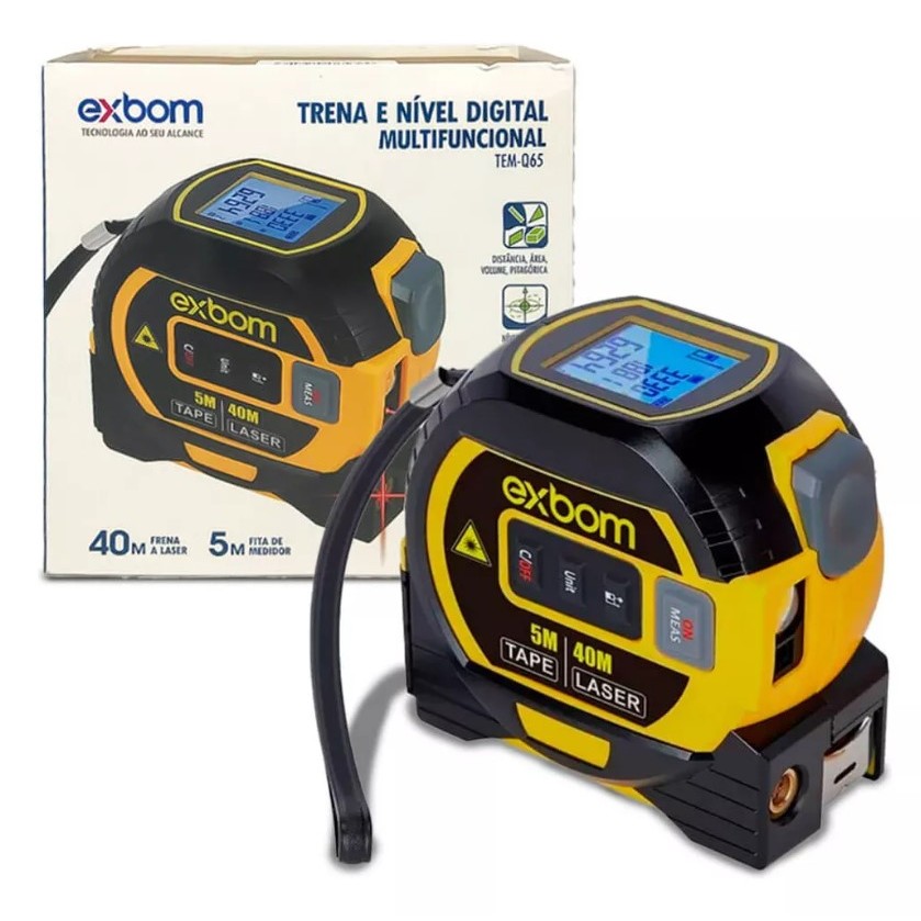 Trena Digital Com Nível Laser e Fita Métrica 4D Multi em 1 Com Visor TEM-Q65 EXBOM