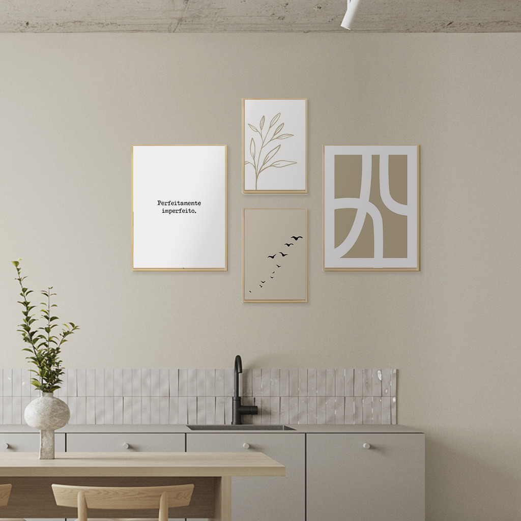 Kit 4 Quadros Decorativos Folhagem e Pássaros | Minimalismo e Natureza para Sala e Quarto