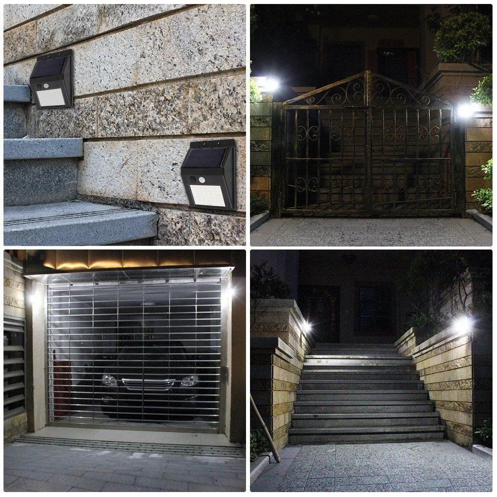 Luminária Energia Solar Parede 30 Leds Com Sensor de Presença