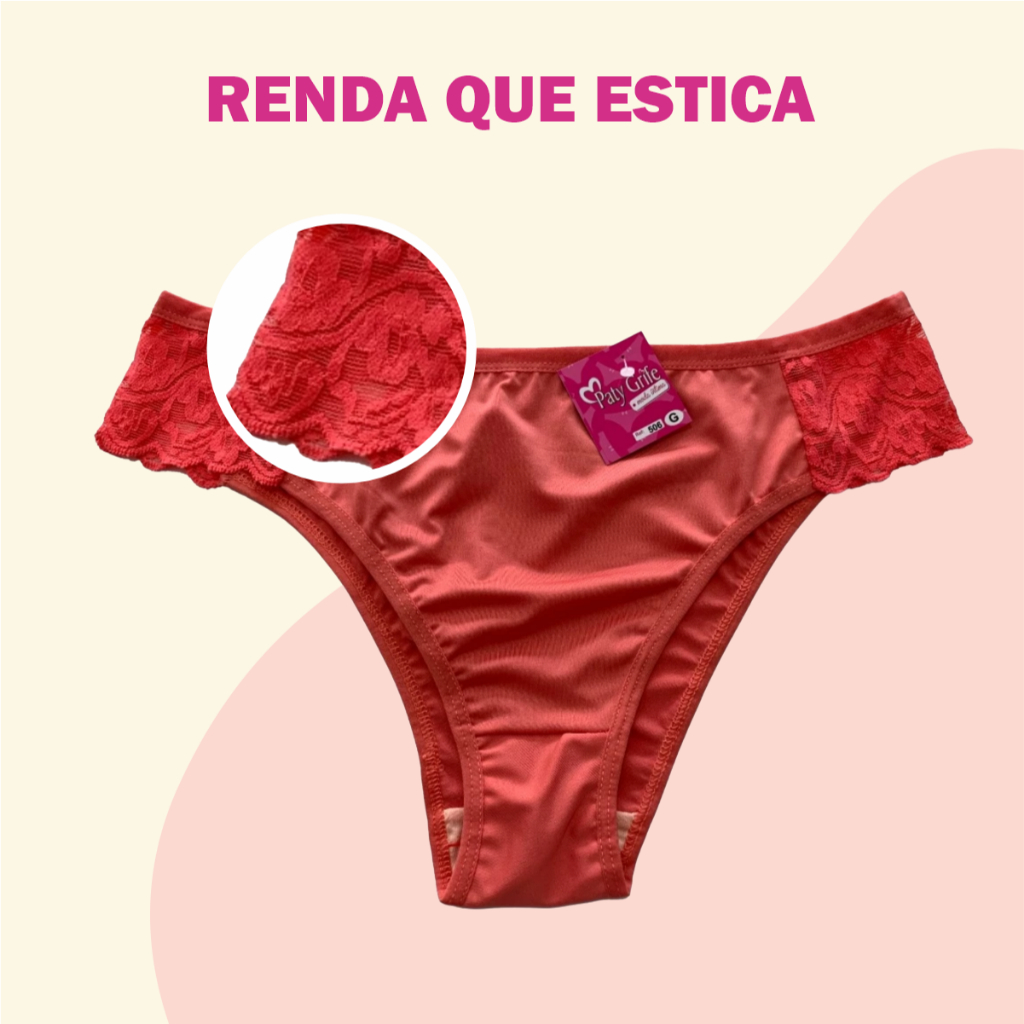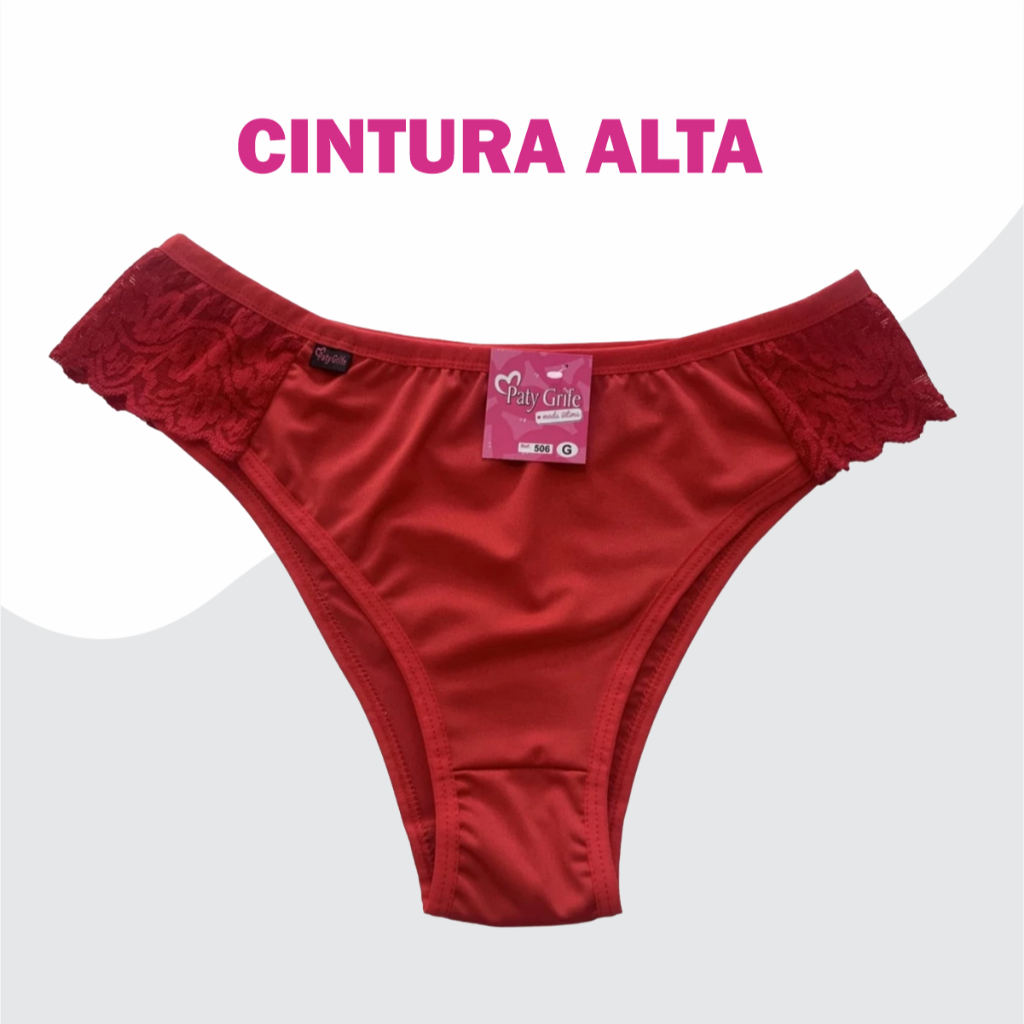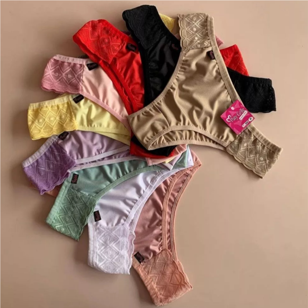 Kit 10 Calcinhas Microfibra Cintura Alta Com Renda