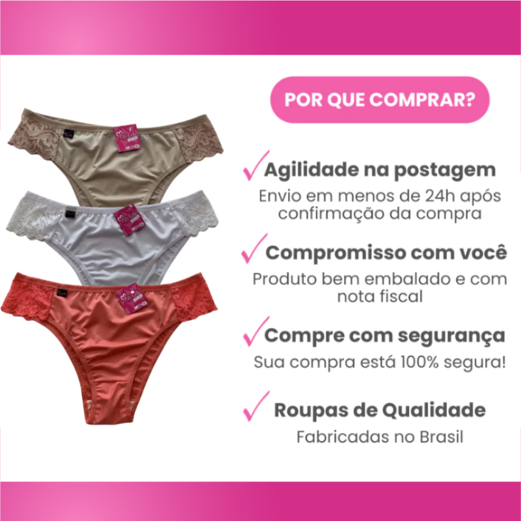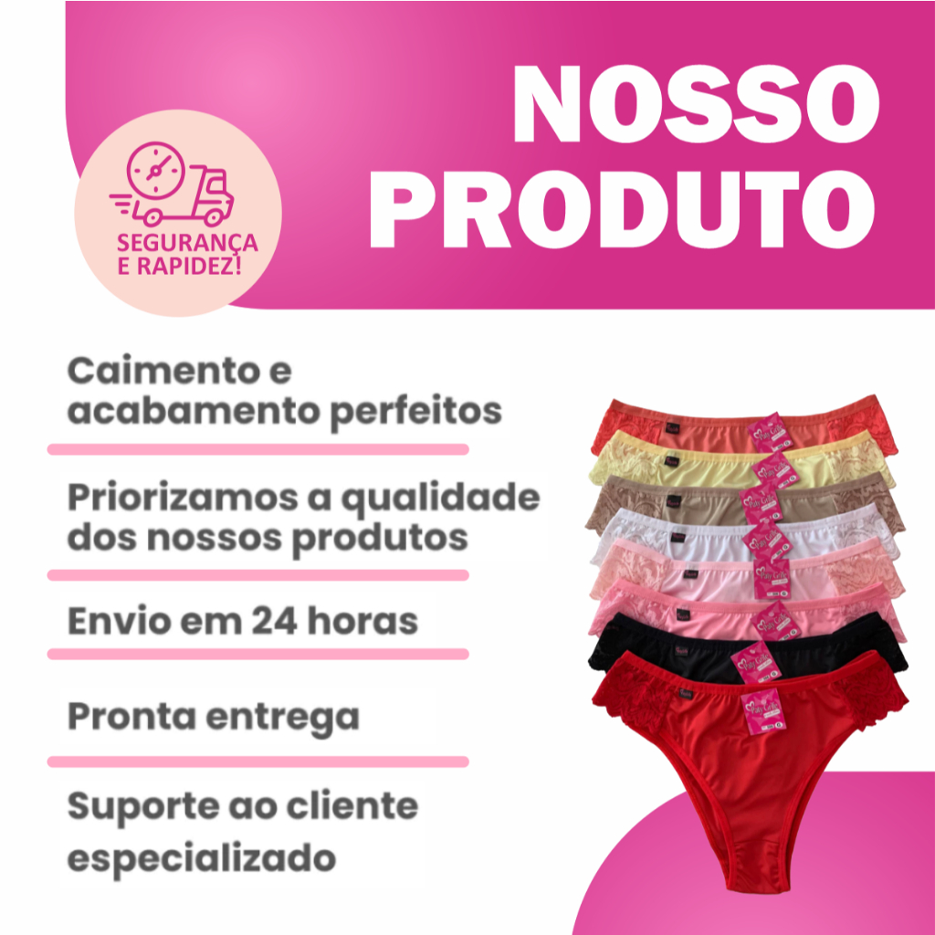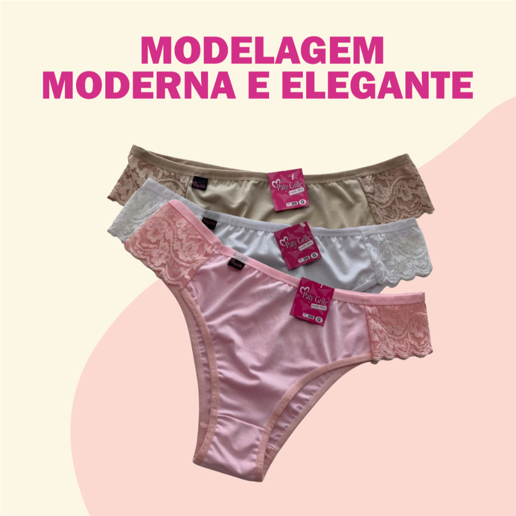 Kit 10 Calcinhas Microfibra Cintura Alta Com Renda