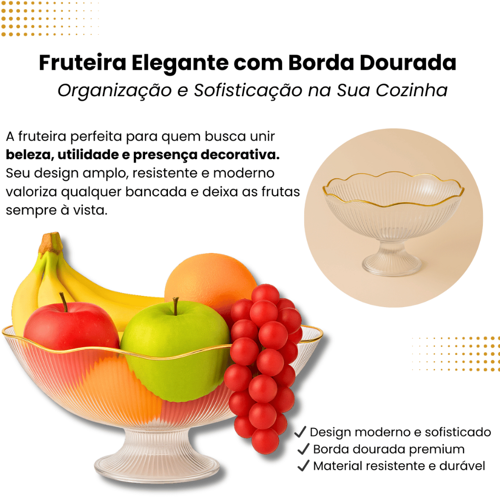Fruteira Saladeira Organizador Multiuso De Frutas Tipo Aparência de Vidro Transparente Resistente