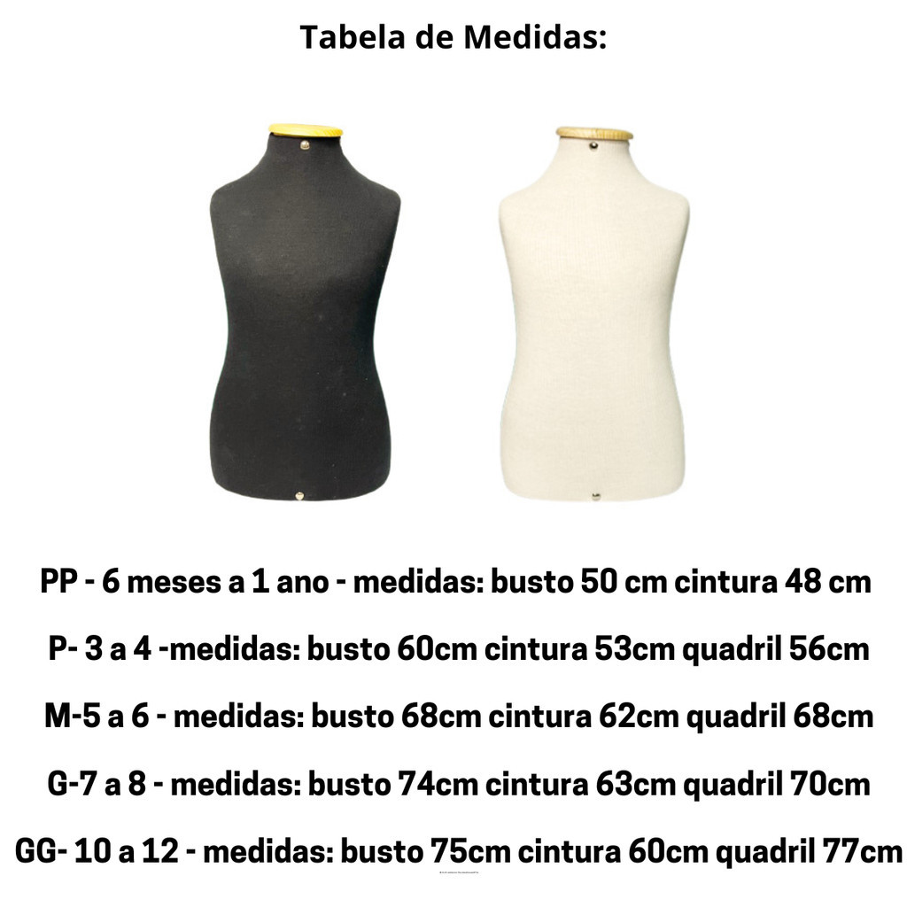 1 Busto Manequim Infantil Forrado Moulage Confecção Sem Pedestal Vitrine Loja