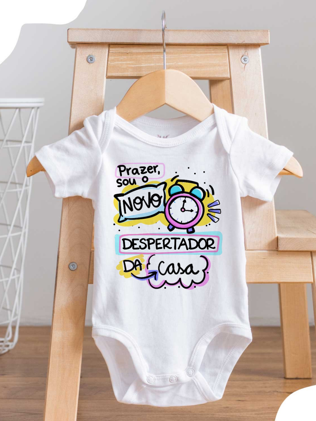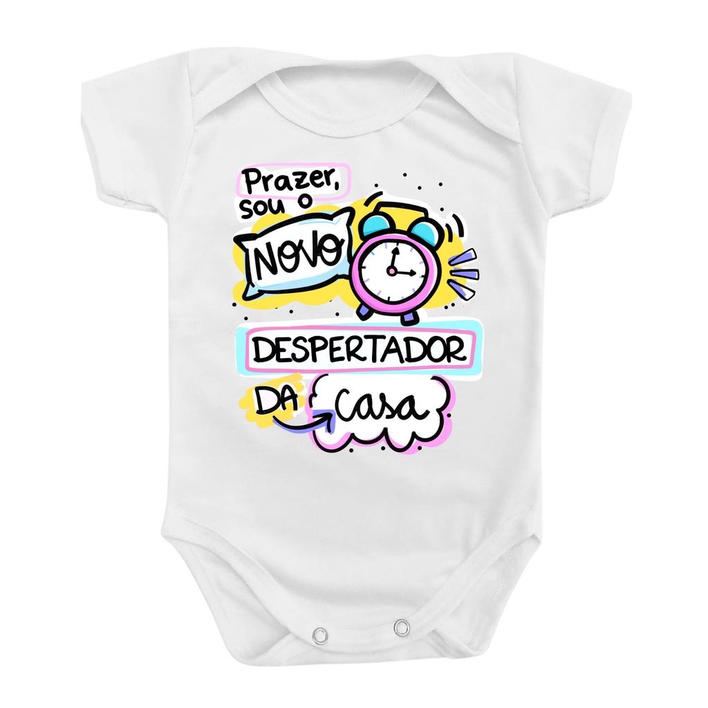 Body de Bebê Menina Rosa Sou Novo Despertador da Casa Roupa