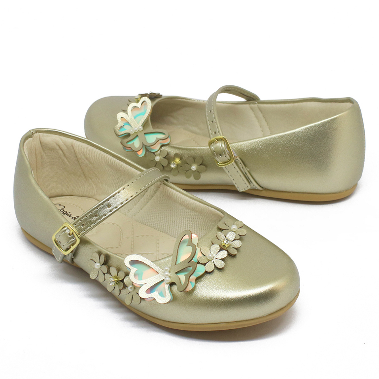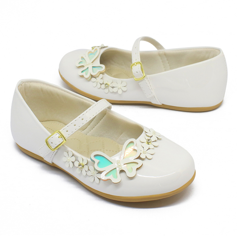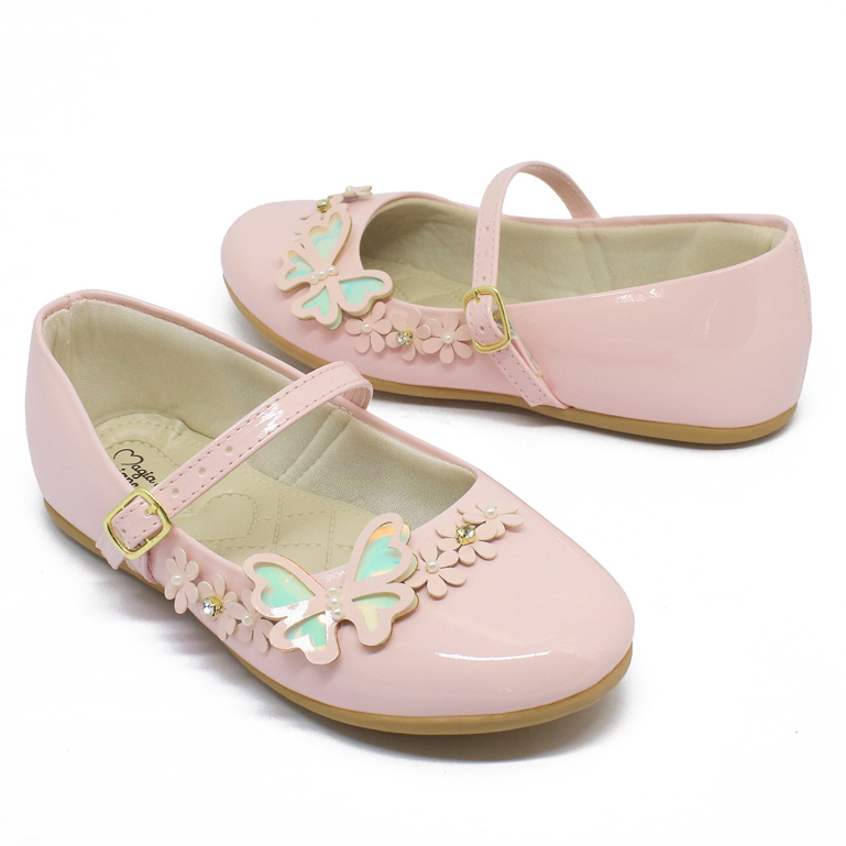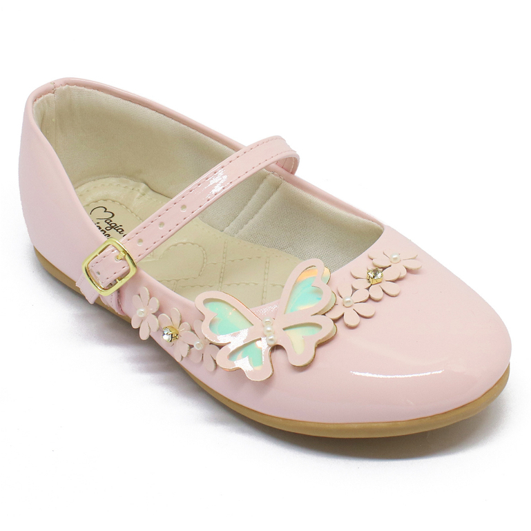 Sapatilha Infantil Menina Boneca Confortável Batizado Casamento Daminha Borboleta Flor Verniz Pérola
