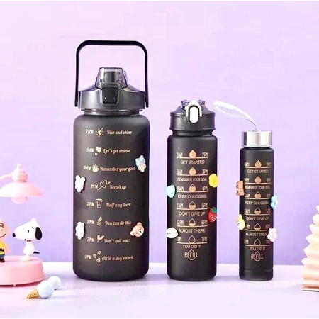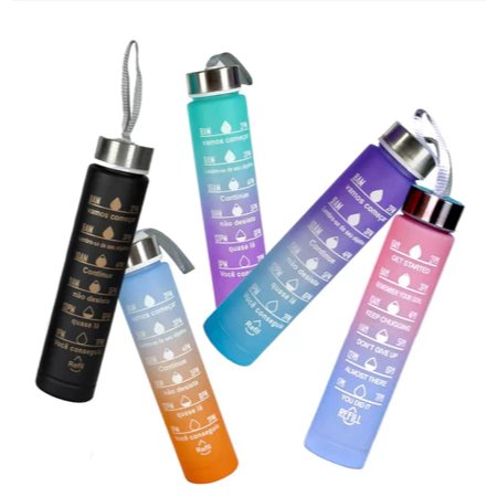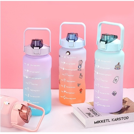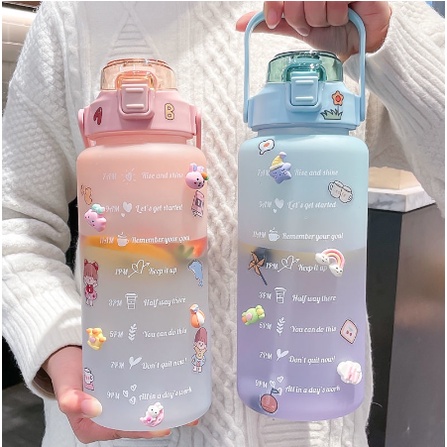 Garrafa Grande 900ML ou 2000ML Coloridas Com Canudo, Frases Motivacionais e Adesivos