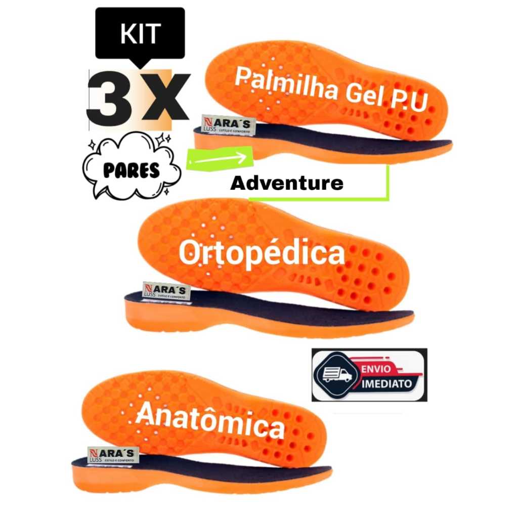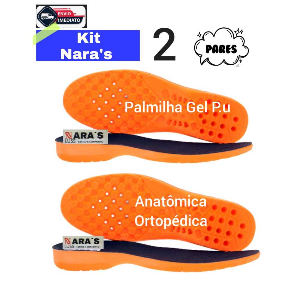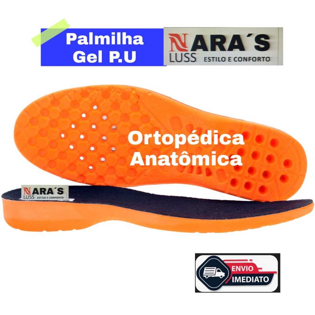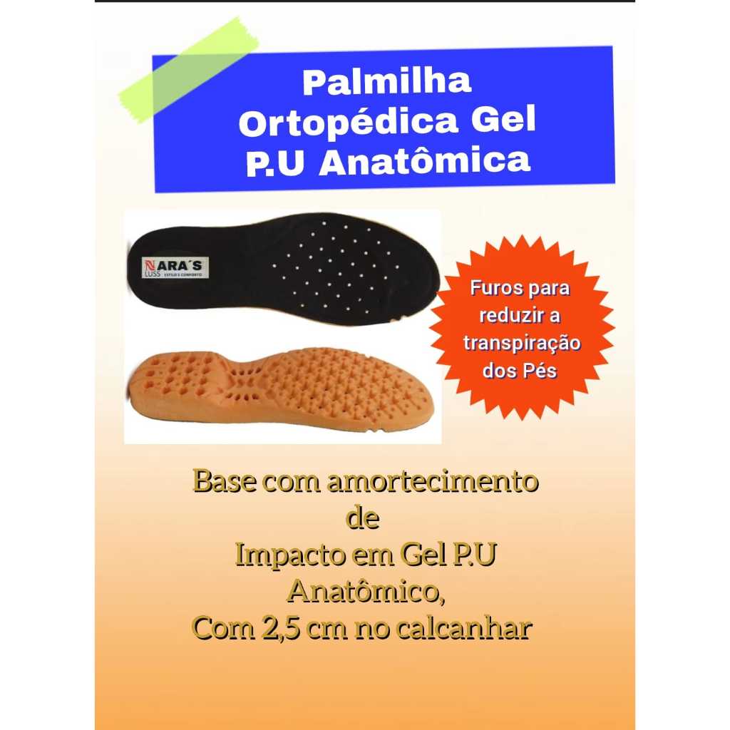 Palmilha Ortopédica Anatômica Anti-impacto Gel P.U Extra Macia Antibacteriana Furos Redz Umidade pês