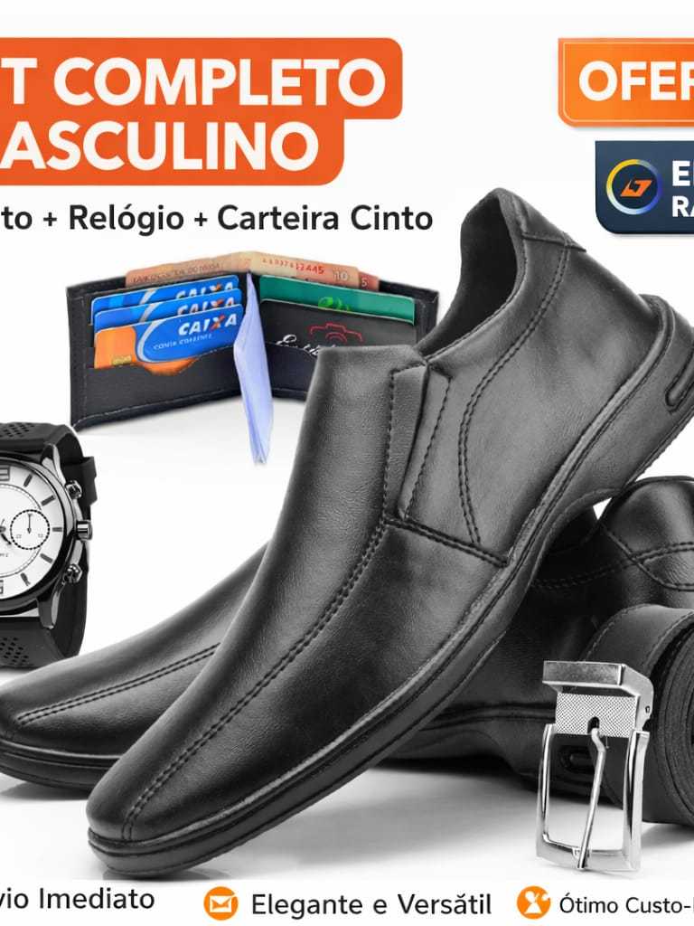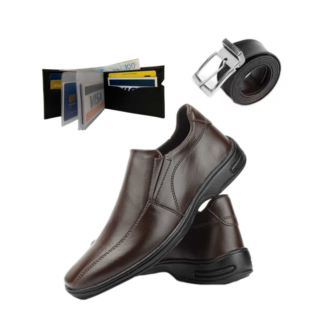 Sapato Social Masculino Monte seu KIT Sapato+ Relógio + Cinto + Carteira Sapato Amortecedor Confot