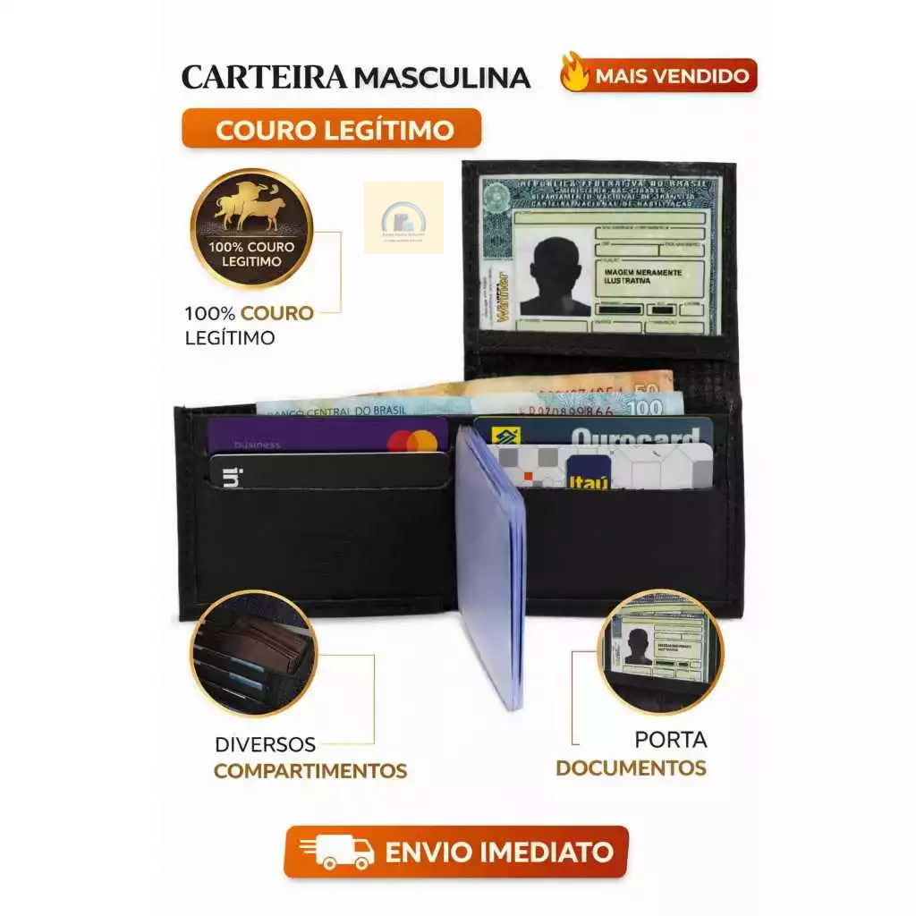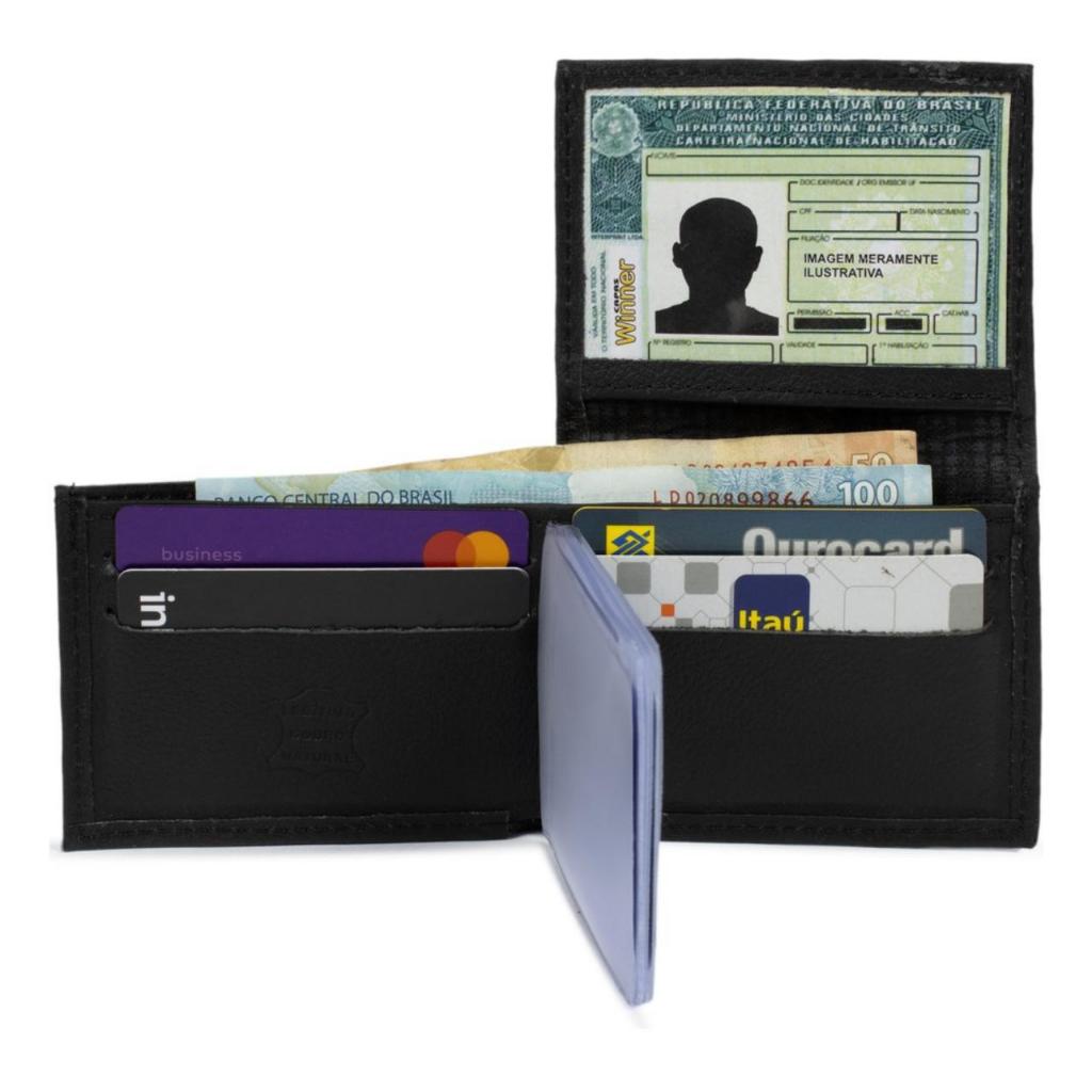 Carteira Masculina premium Couro Legitimo, Modelo L Porta Documento 6 Cartões/Cnh/cédulas