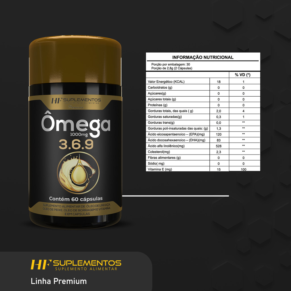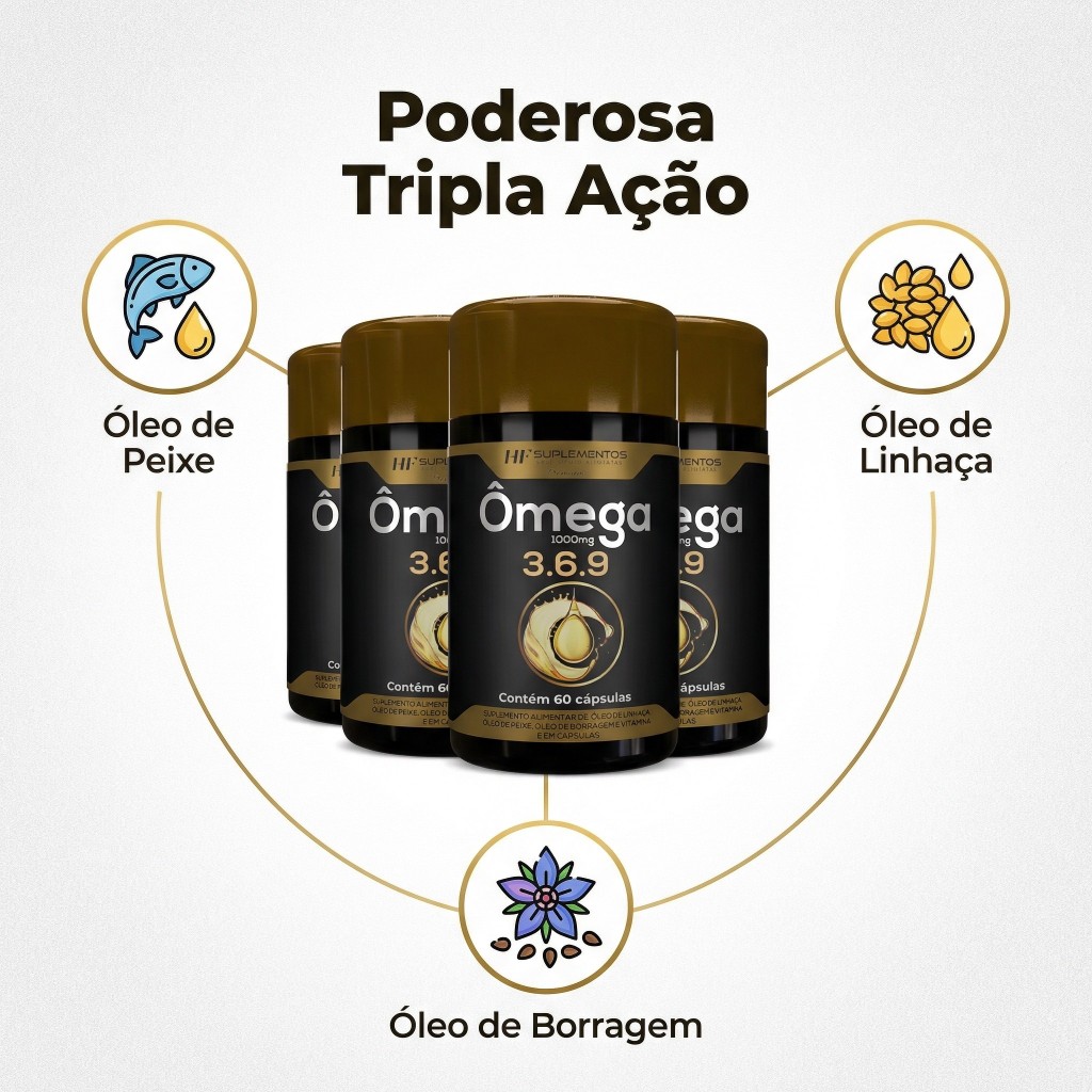 Omega 3 1450mg HF Suplementos 60 Caps Óleo de Peixe Puro EPA DHA Concentrado Coração e Saúde Vida