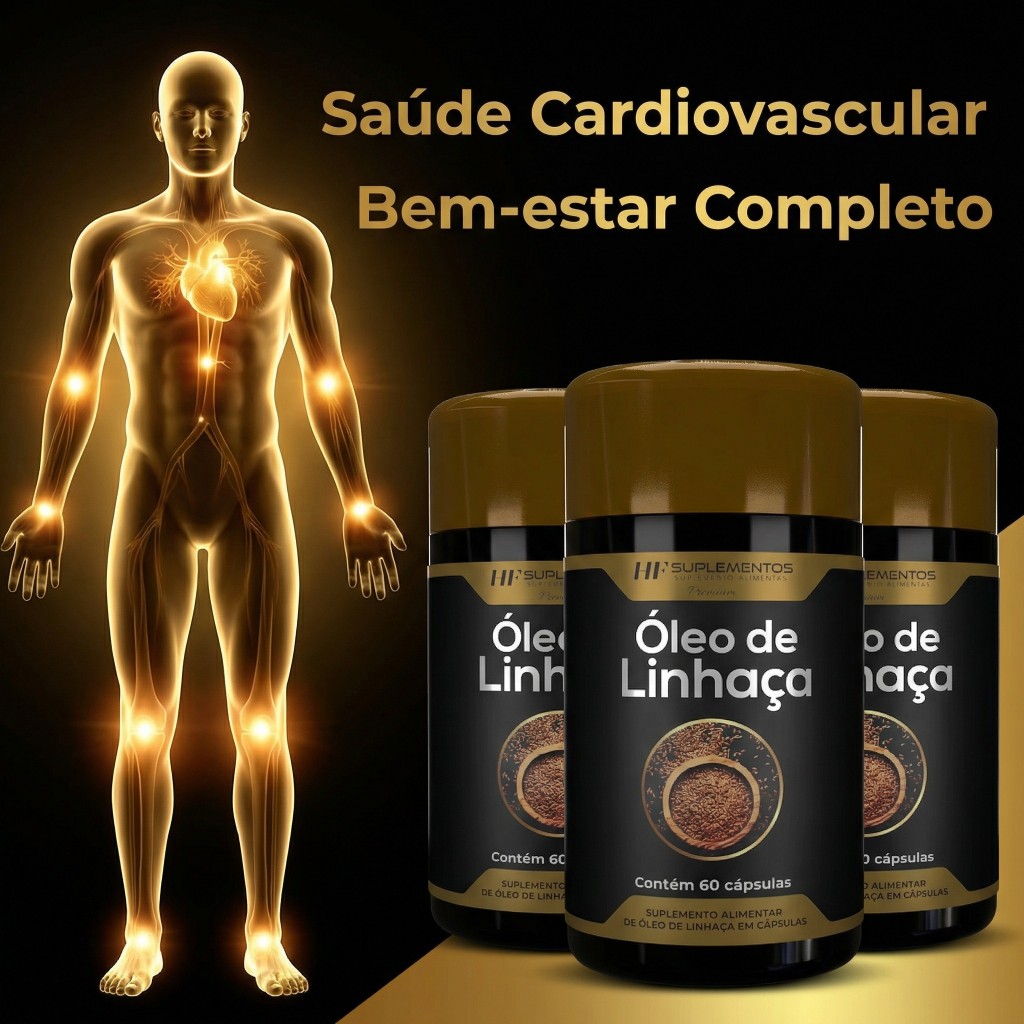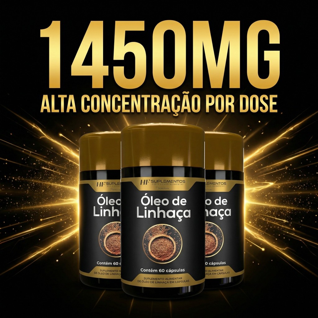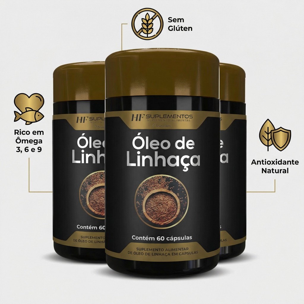Kit 3x Óleo de Linhaça 1450mg HF Suplementos 60 Caps Premium Ômega 3 6 9 Natural Digestiva