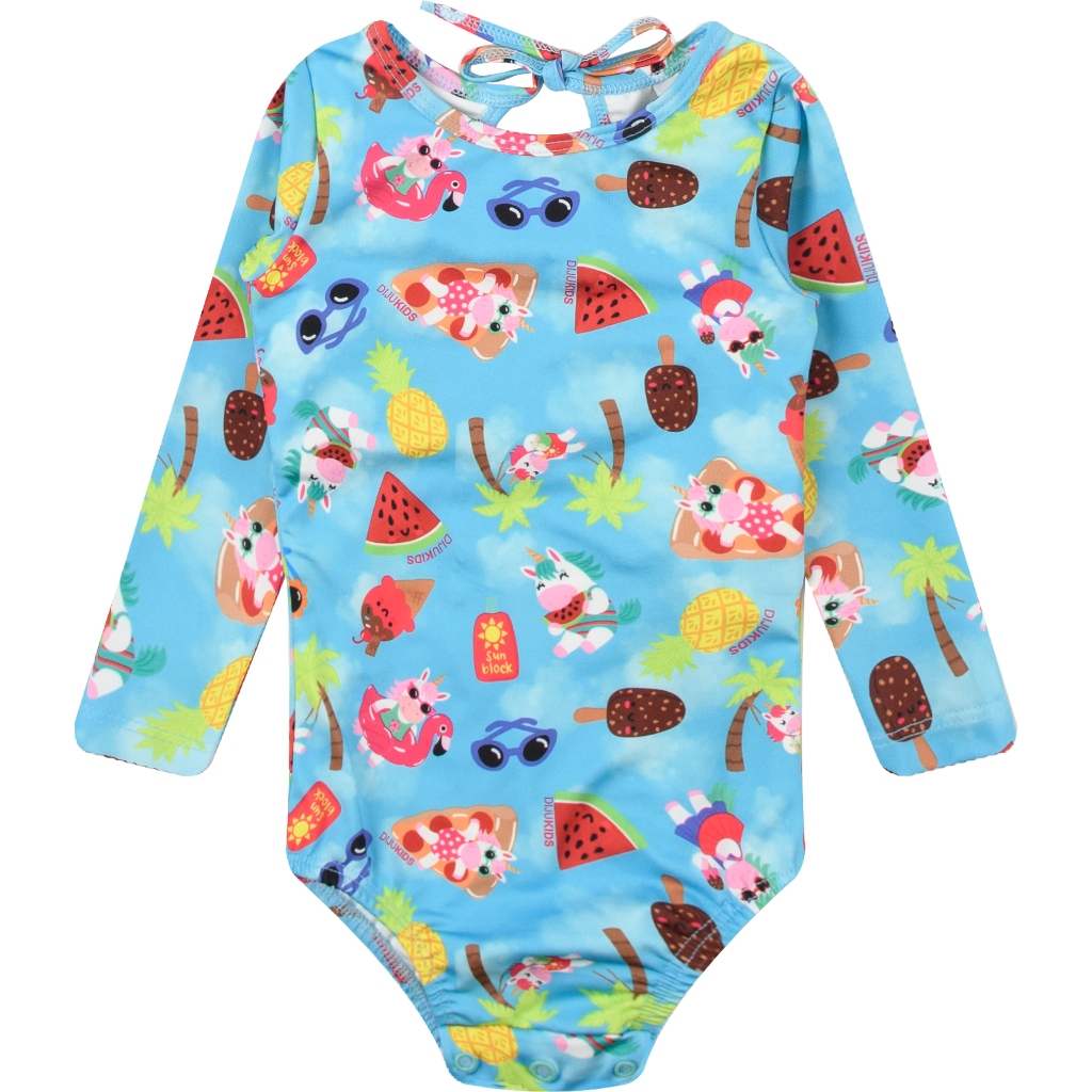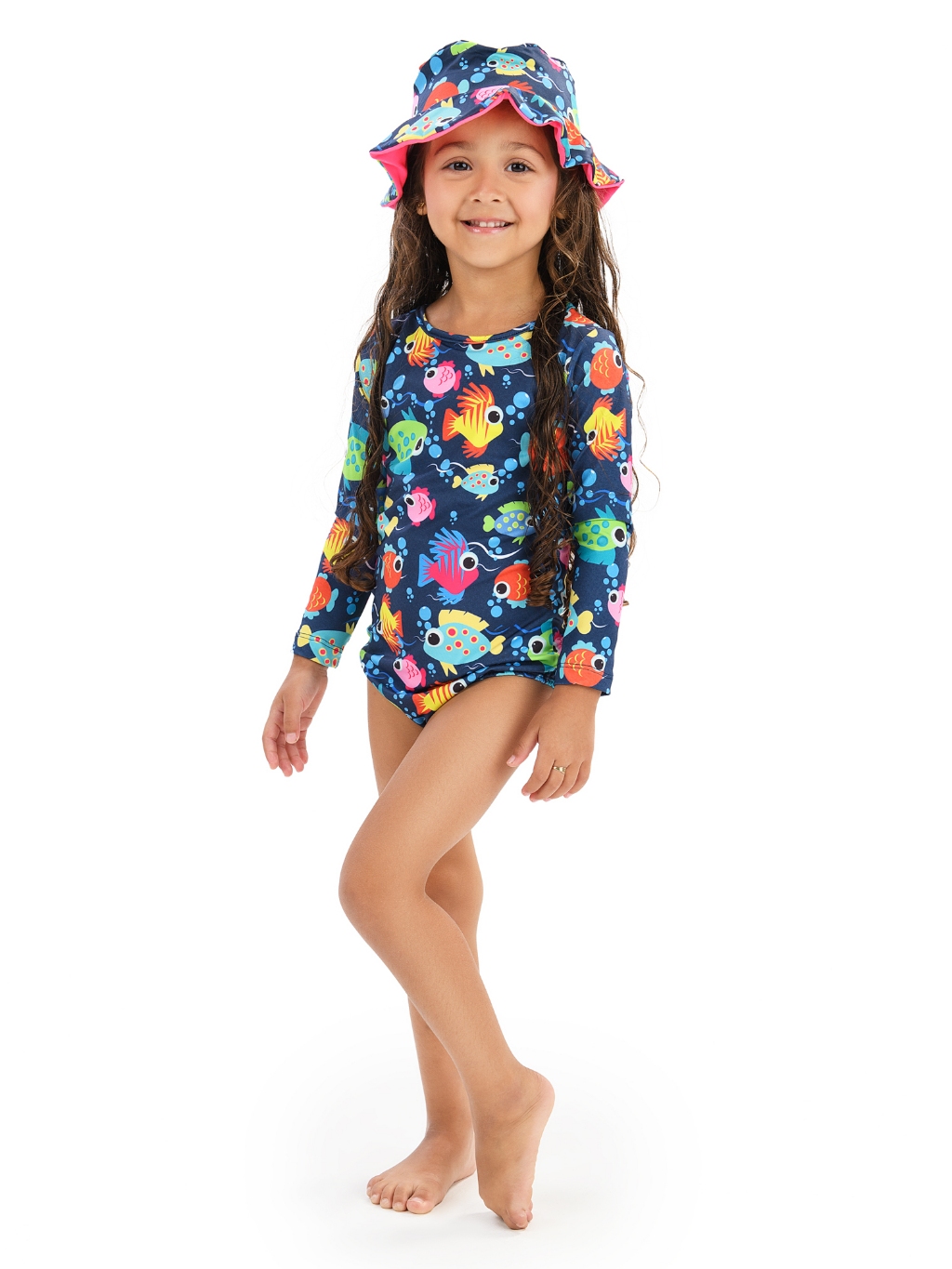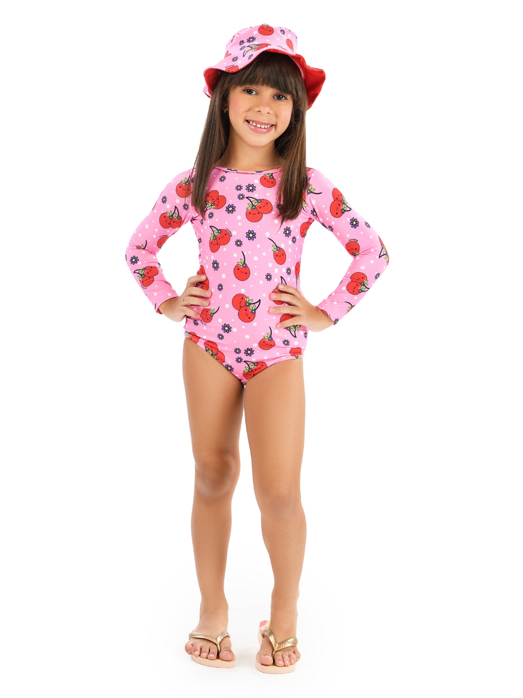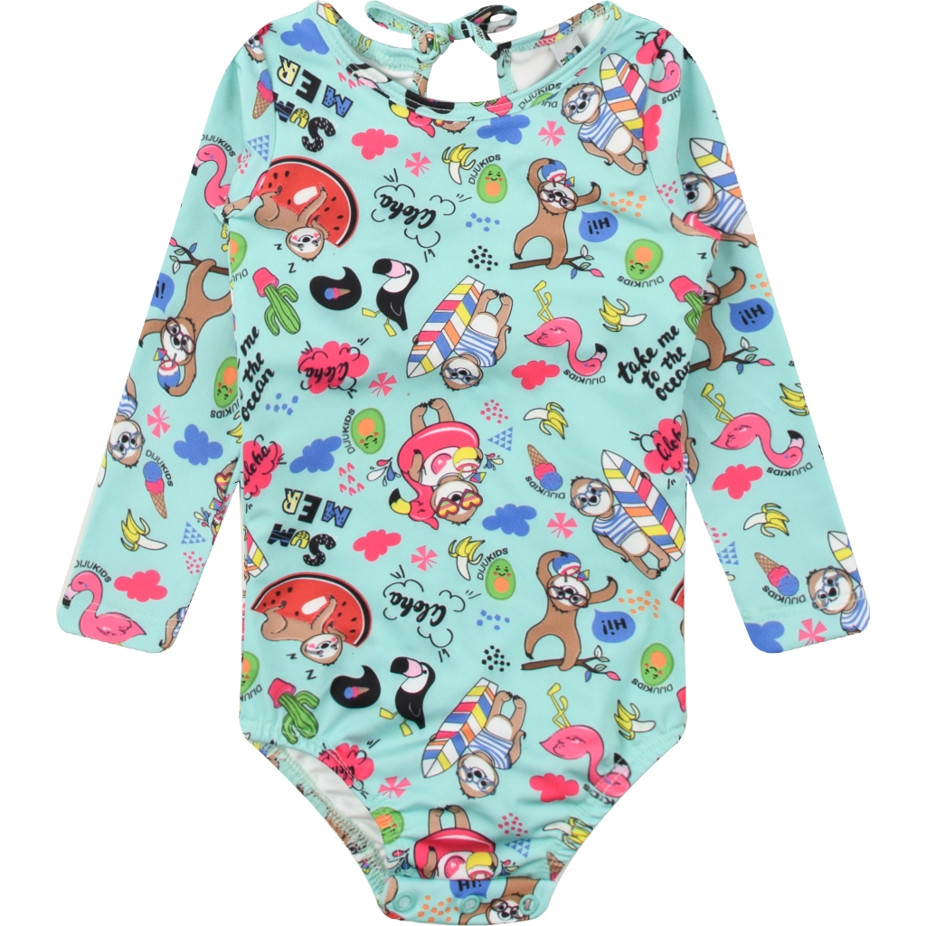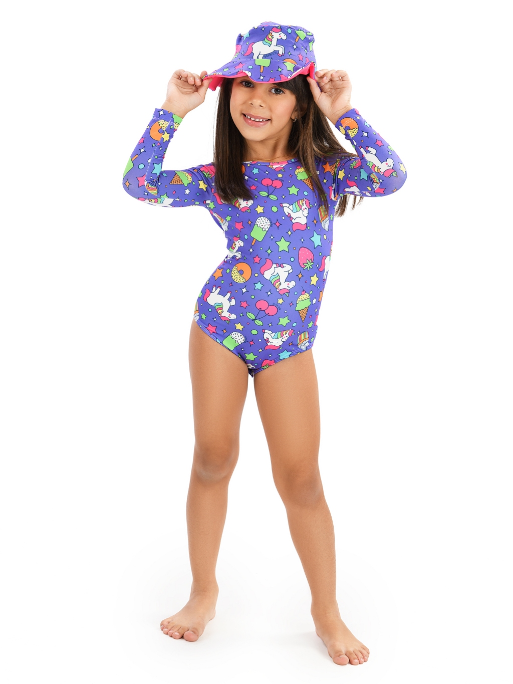 Maiô Body Manga Longa e Chapéu Com Proteção UV50+ Praia Verão Natação