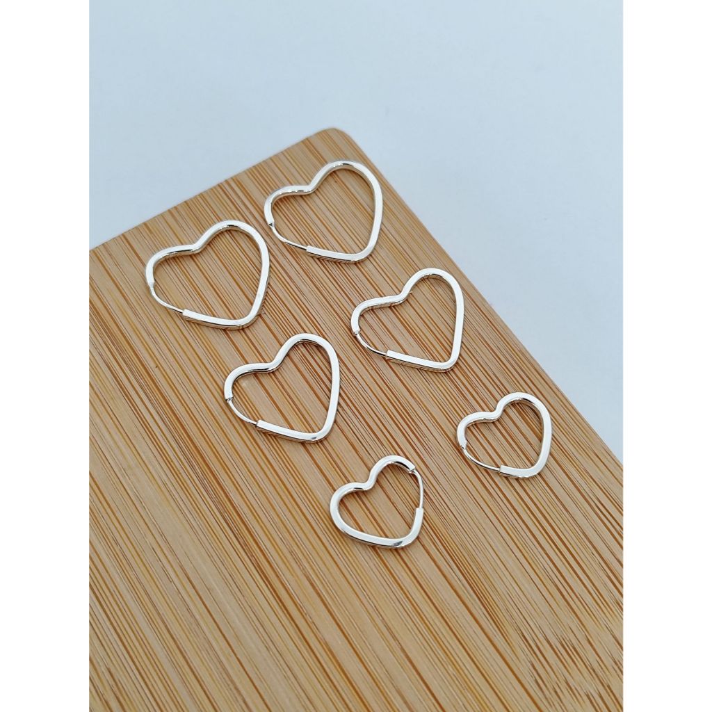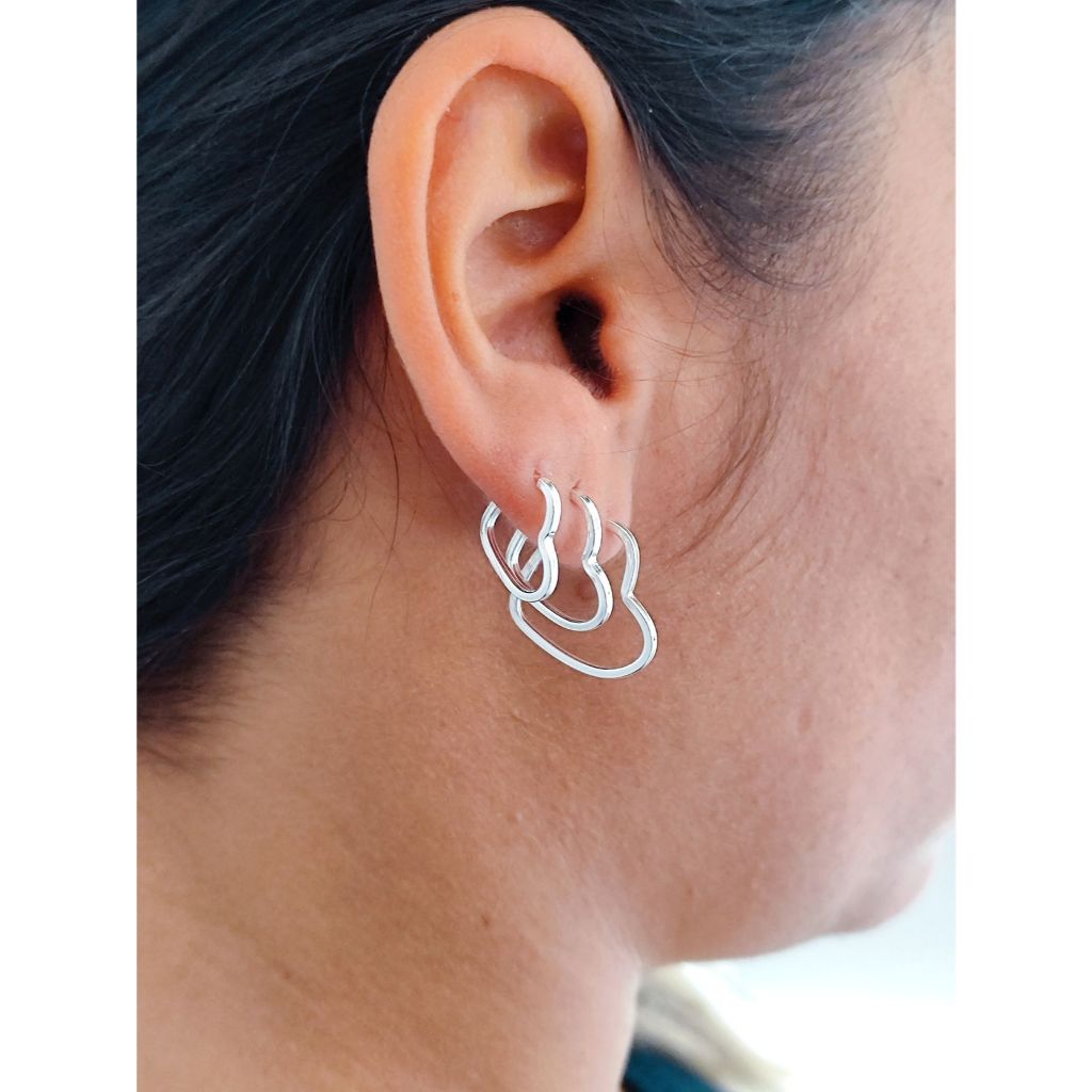 Trio de Brincos Argolas Coração Fio Quadrado Prata 925 Legítima