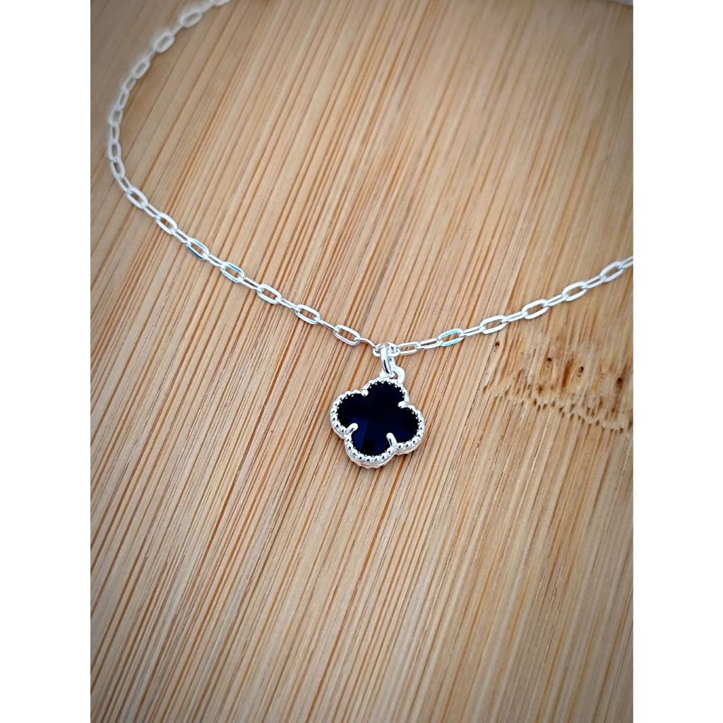 Pulseira Prata 925 Original - Trevo Pendurado Preto