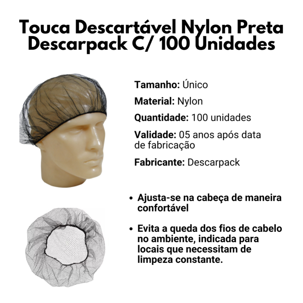 Touca Preta Para Cabelo Rede Redinha Descartável 100unidades