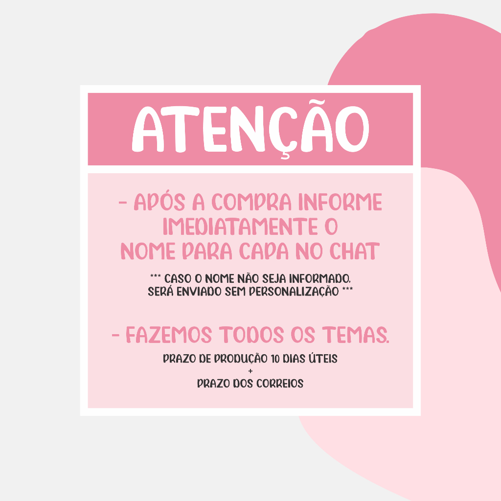 Sob encomenda: envio após 10 dias da compra