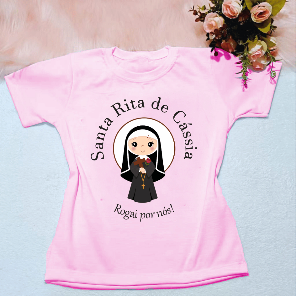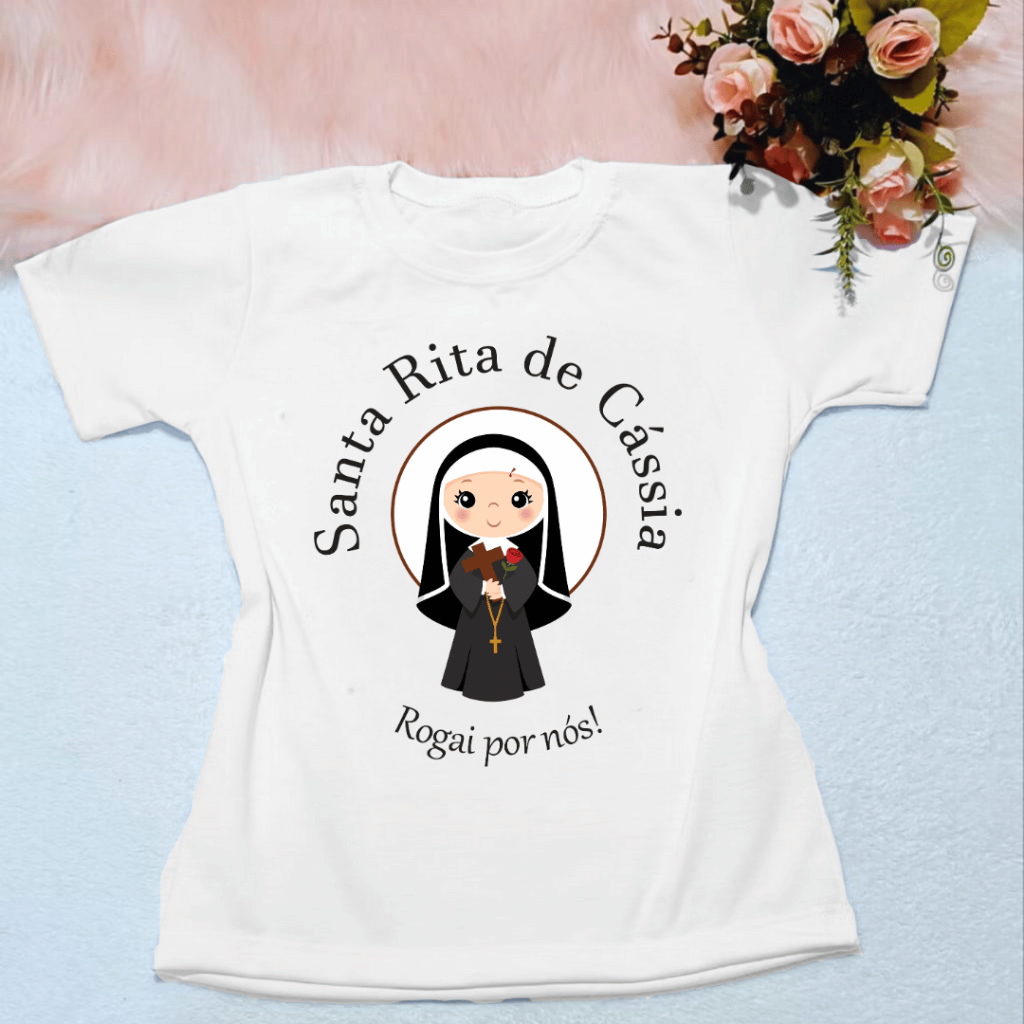 Camiseta INFANTIL Unissex Santa Rita de Cássia 100% Algodão