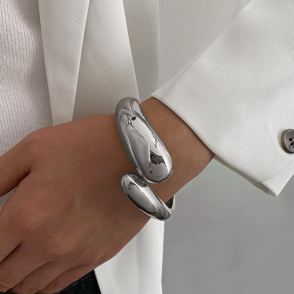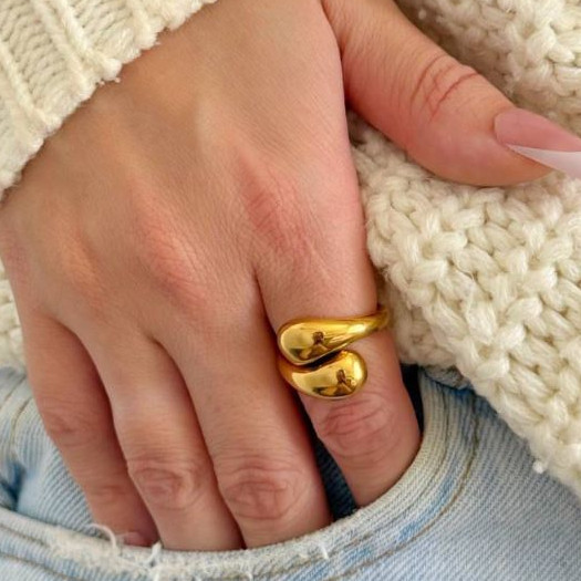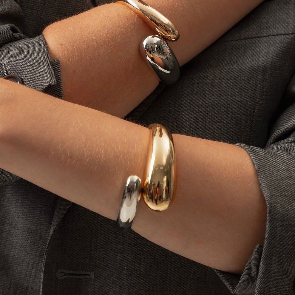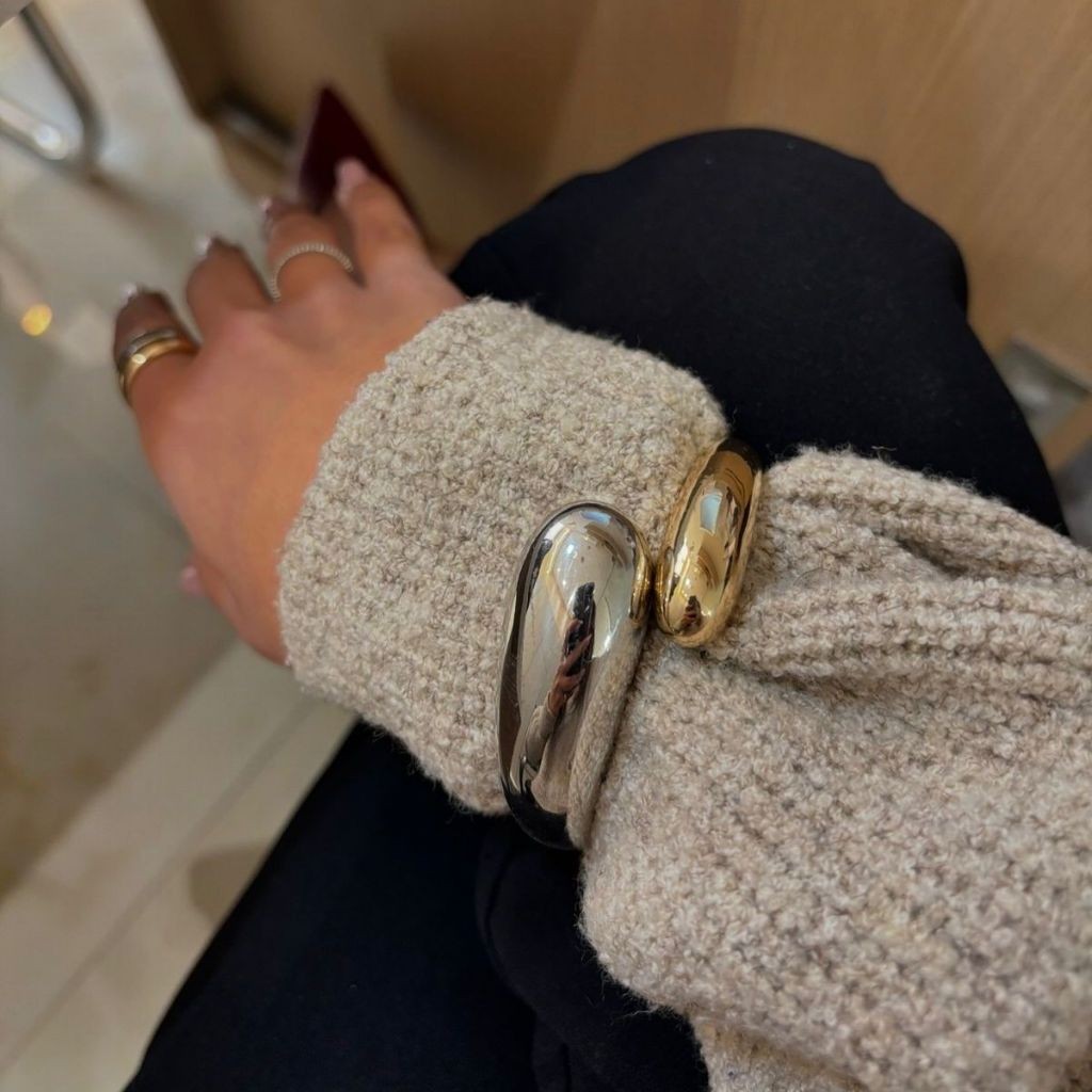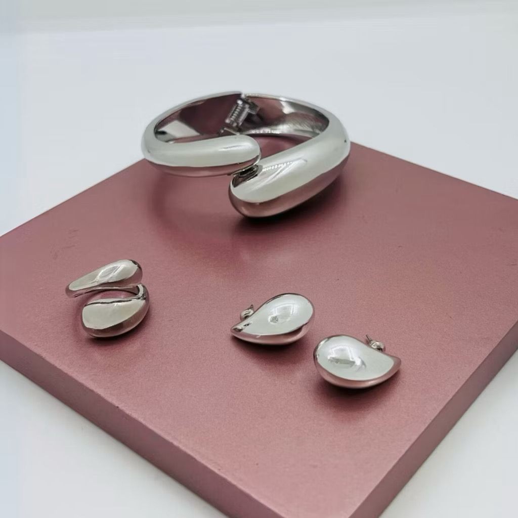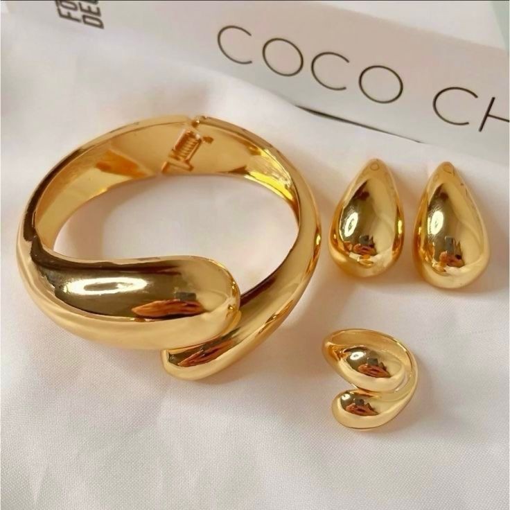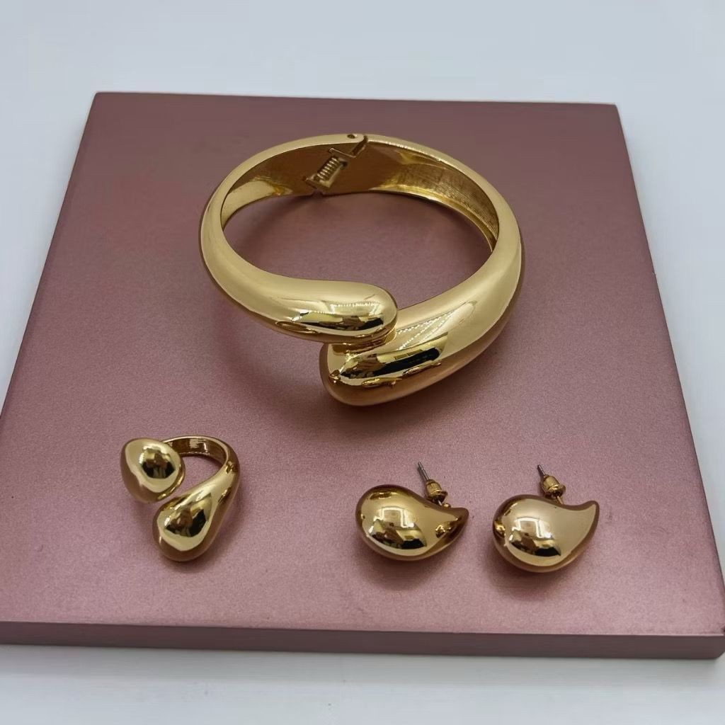 Conjunto Bracelete Brinco e Anel Gota Duplo Moda Luxo Duo Dourado Prata