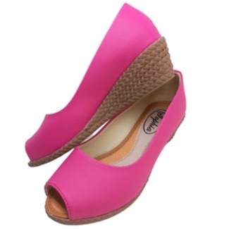 Sapato Feminino Anabela Bico Aberto Leve Confortável Charmoso