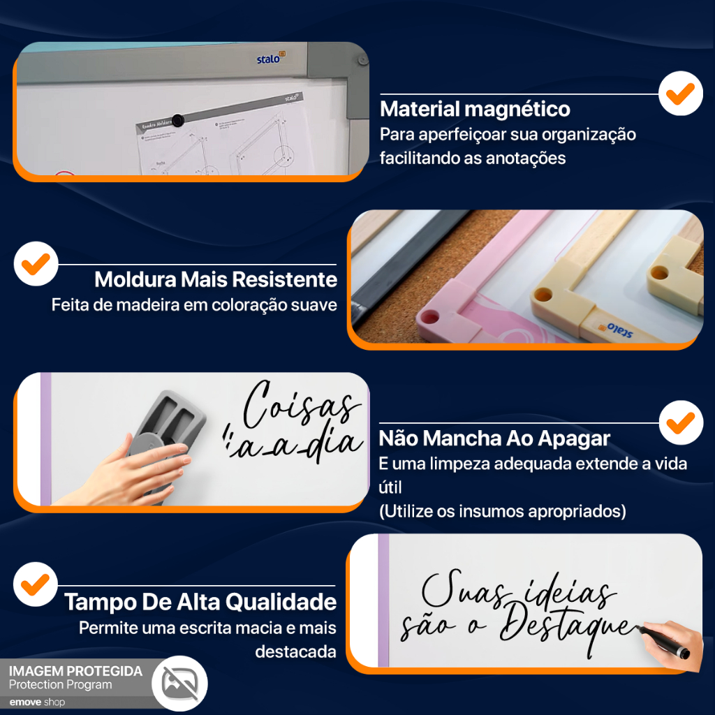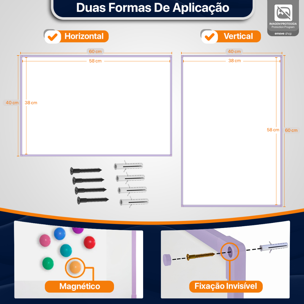 Lousa Quadro Branco 60x40cm Soft Lilas + 4 Canetas e Apagador