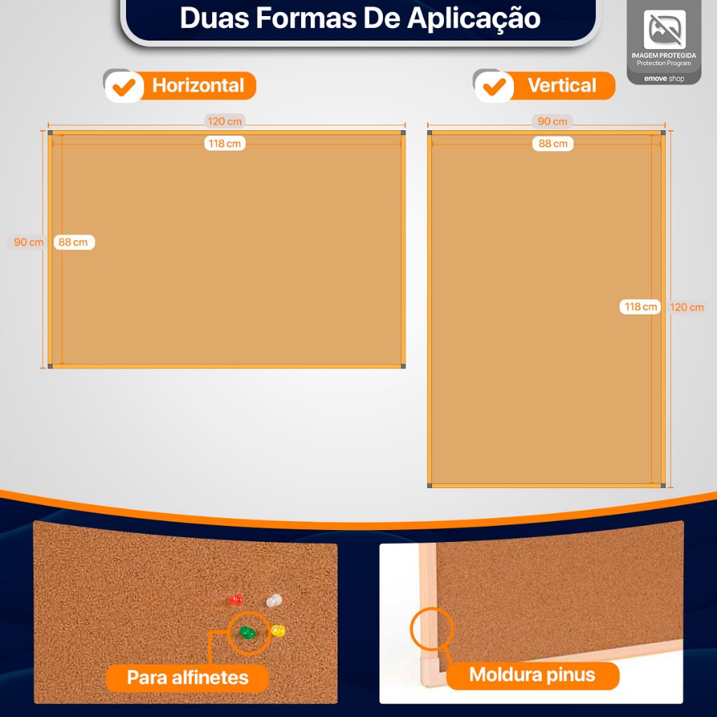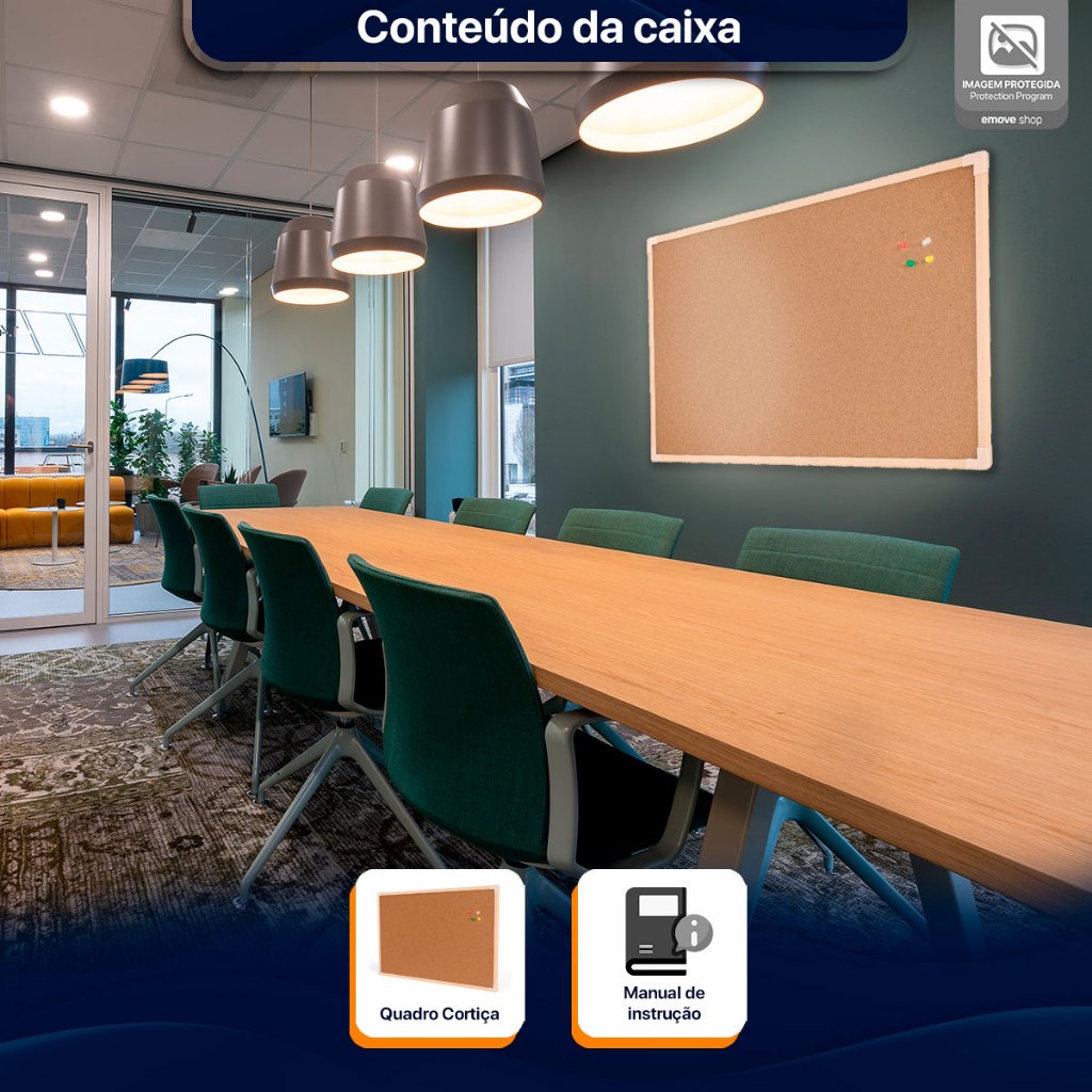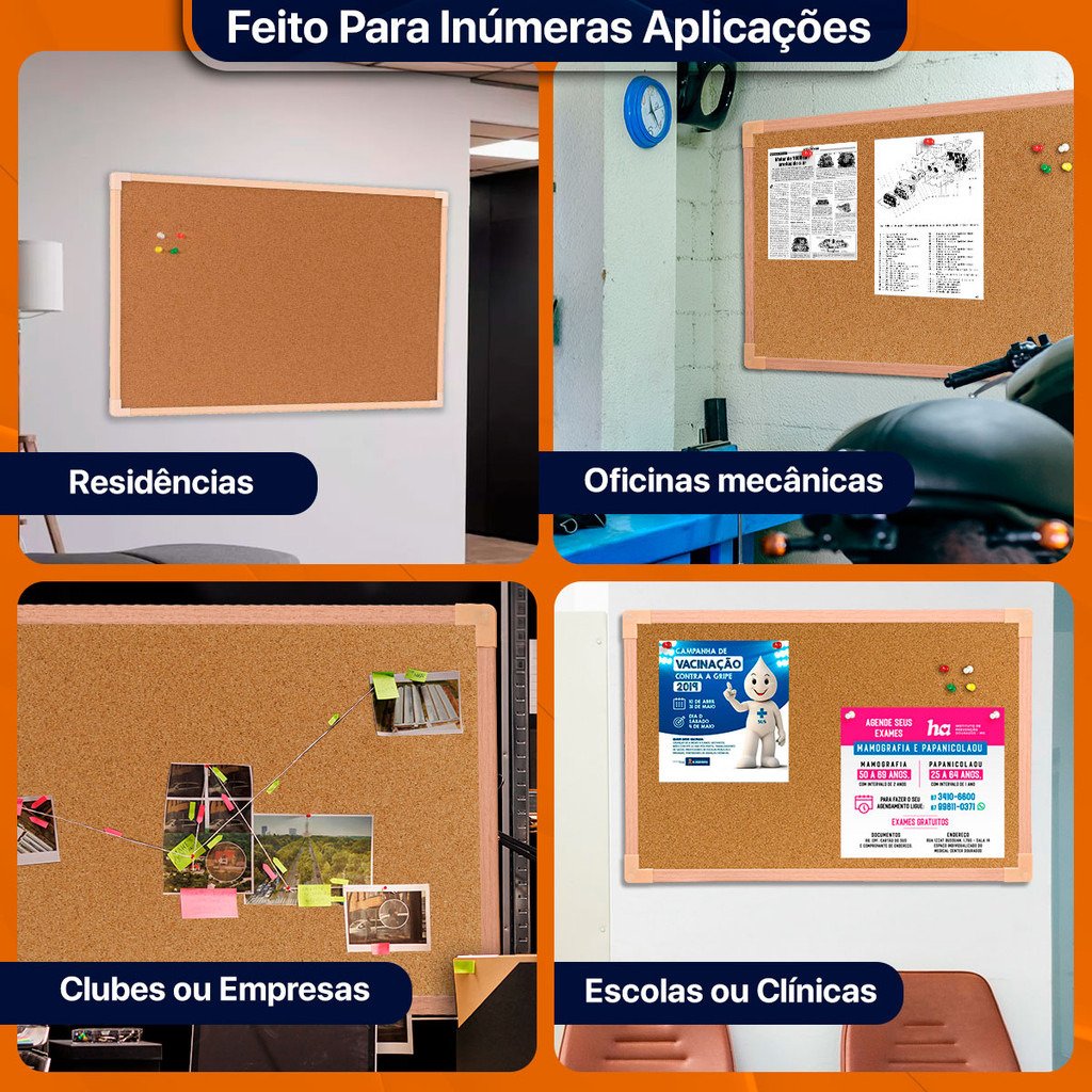Lousa Quadro De Aviso Cortiça Madeira 120x90cm Mural Foto Recado Moldura Madeira Pinus Neo Emove