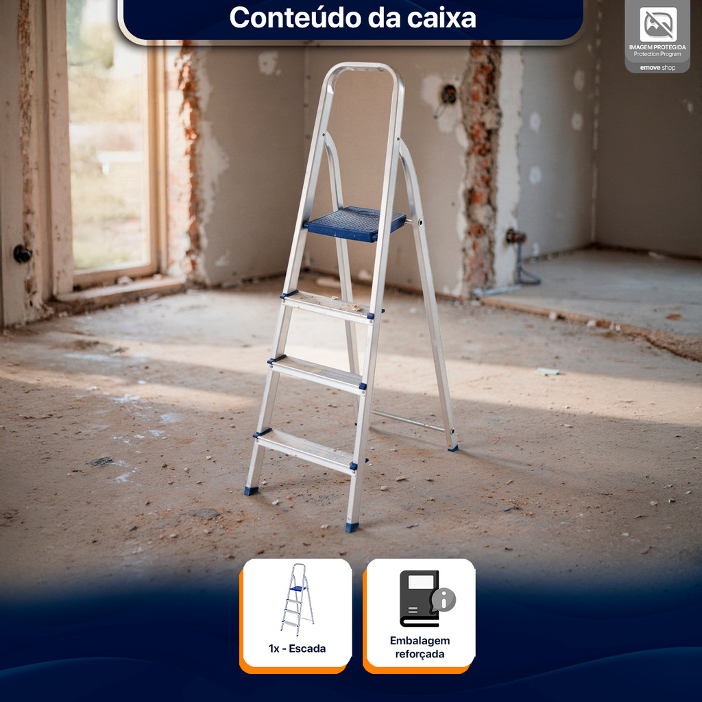 Escada 4 Degraus em Alumínio Mor Dobrável Tesoura Até 120kg