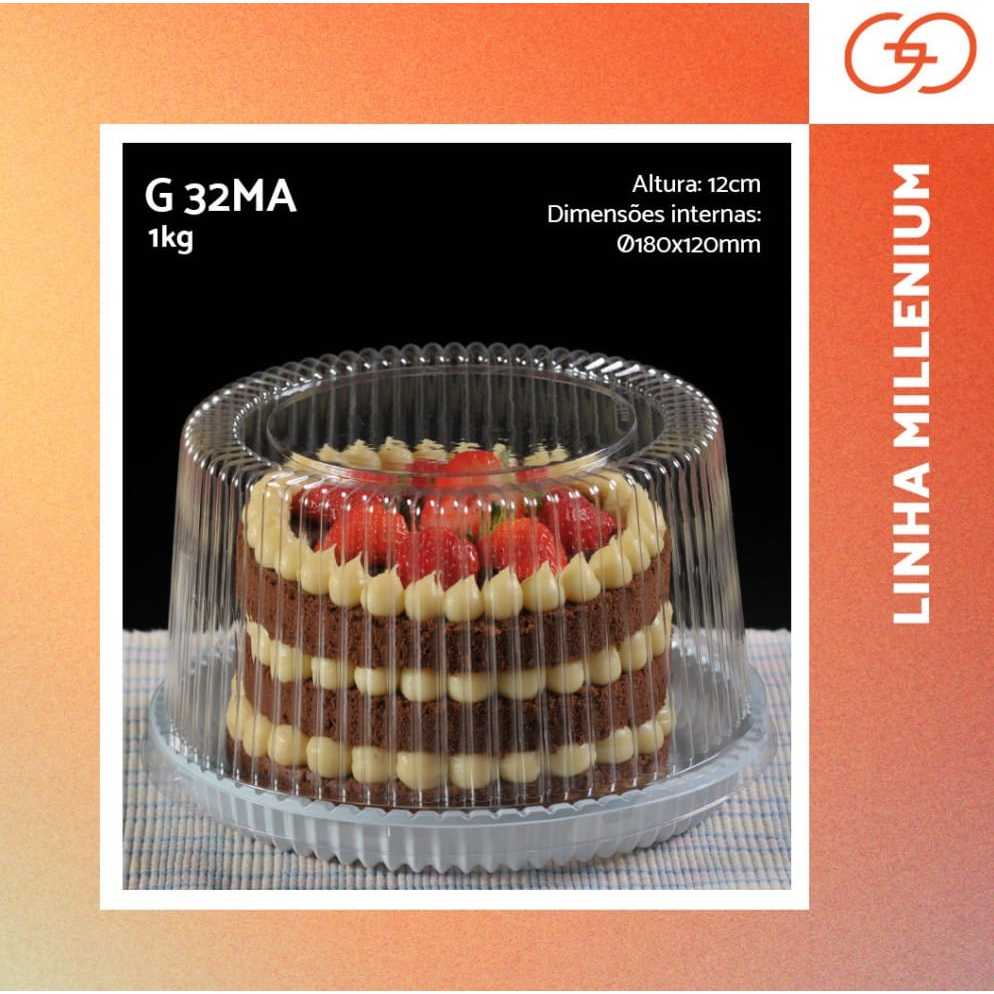 50un Embalagem Bolo/Torta Forma 18cm 1kg G32MA Tampa Alta Base Branca ou Preta Galvanotek