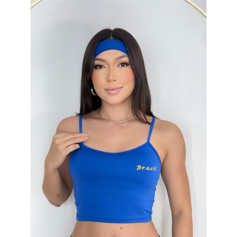 Cropped Brasil Carnaval Feminino Fitness Blusa Alcinha Top Copa do Mundo Regata
