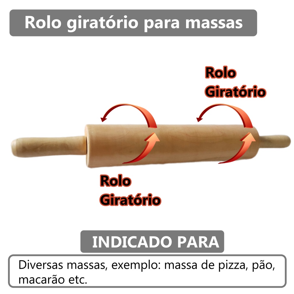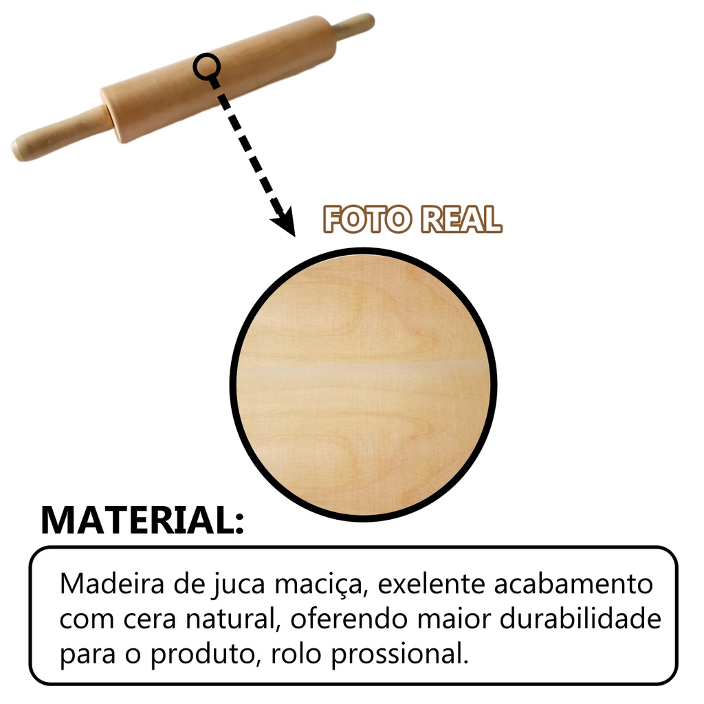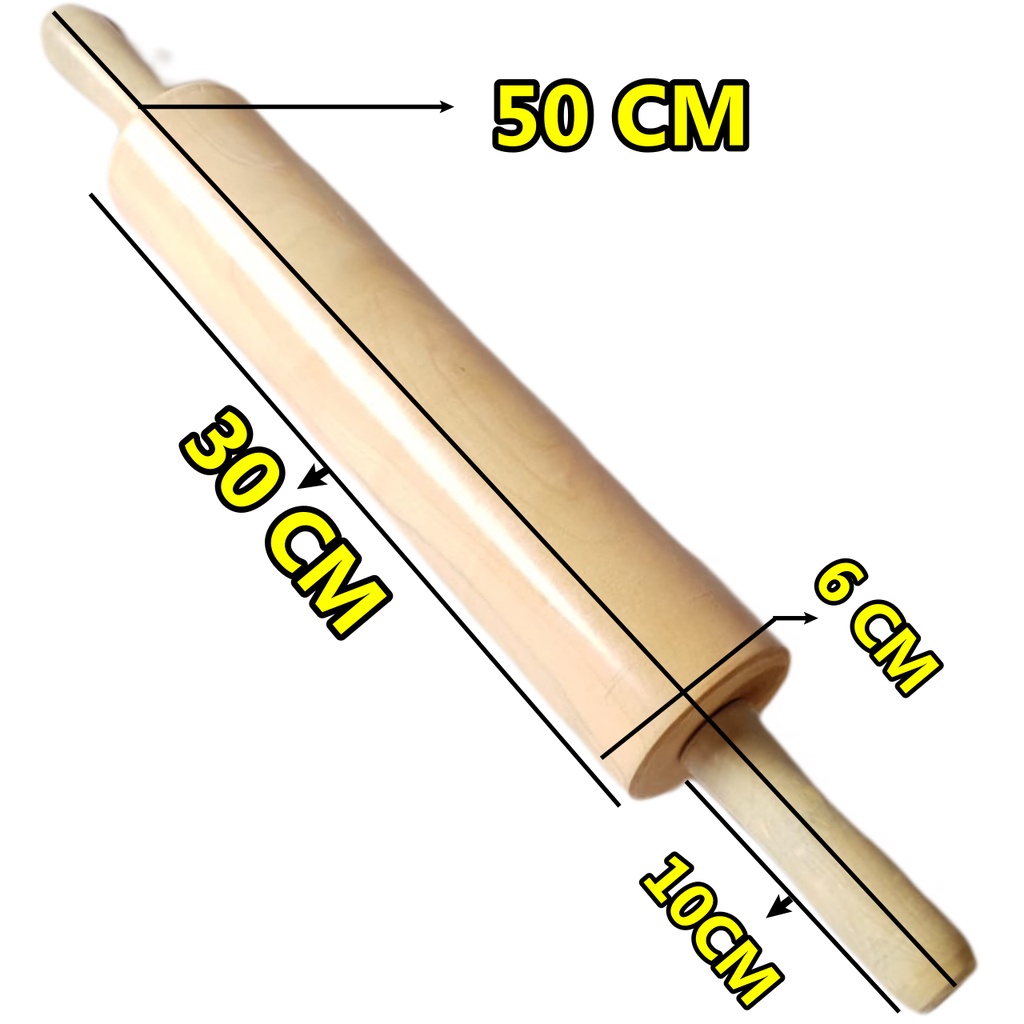 Rolo para massas grande em madeira maciça 50 cm pão, macarrão