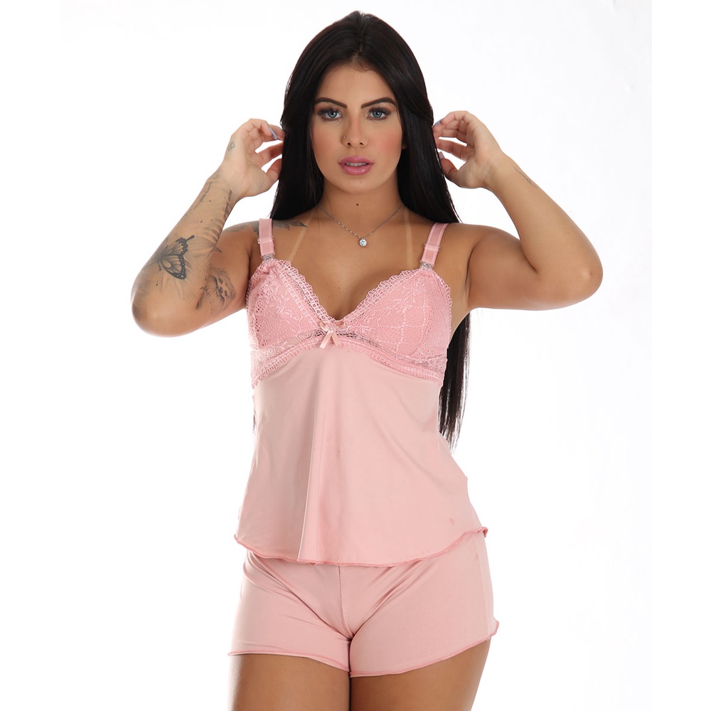 Baby Doll Amamentação de Renda Gestante Grávida Pós Parto