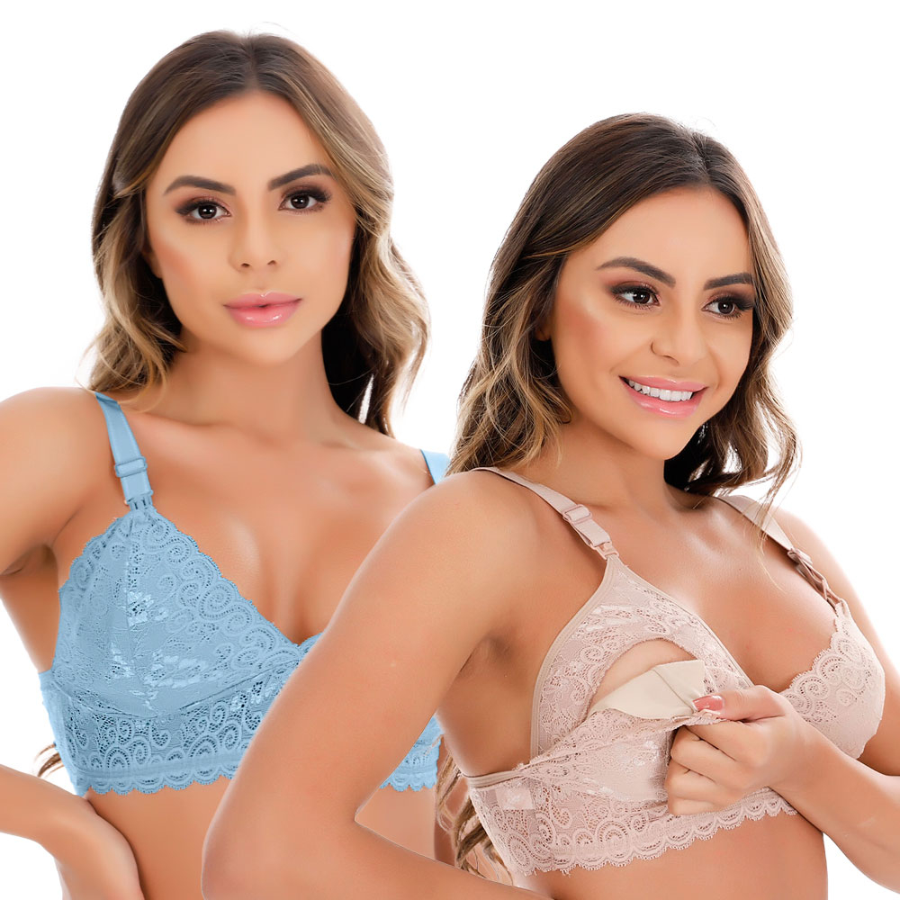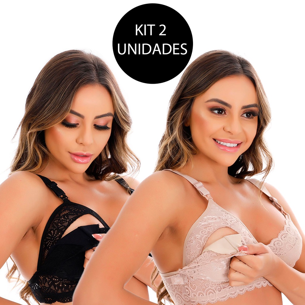Kit 2 Sutiã de Amamentação em Renda Reforçado Gestante Pós Parto