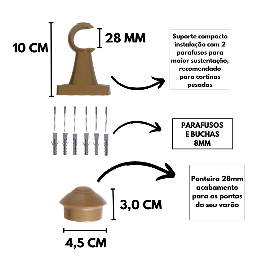 Varão de Cortina 2,20 Metros 28mm ouro velho Compacto / Europa