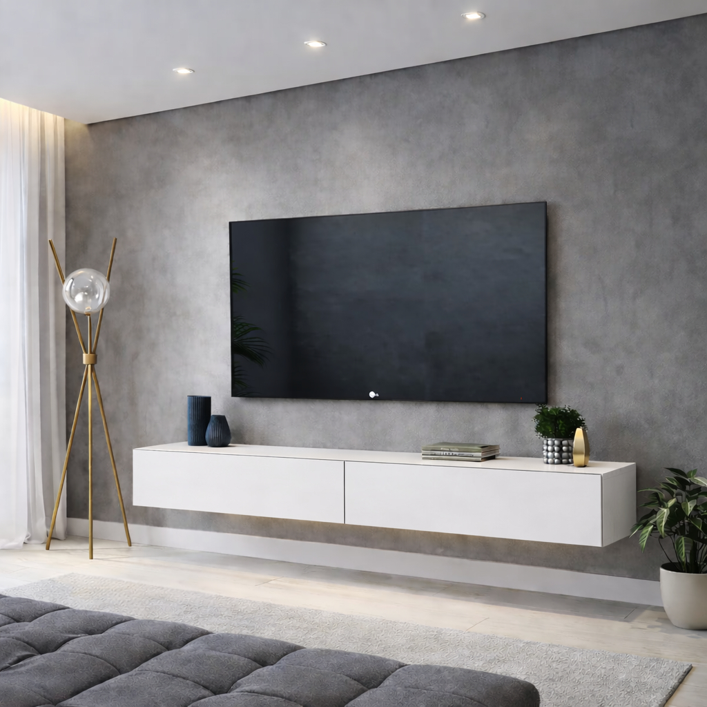 rack para sala com 2 gavetas suspenso de parede tv até 50 a 55 polegadas